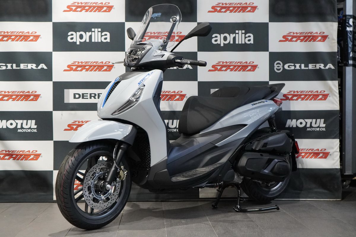 Die moderne Ausstattung des Piaggio Beverly S ist darauf ausgelegt, jede Fahrt zu erleichtern. Das digitale 5,5-Zoll-LCD-Cockpit stellt alle wichtigen Fahrinformationen übersichtlich dar, während das serienmäßige Piaggio MIA-System eine Verbindung zum Smartphone via Bluetooth ermöglicht. Dies erlaubt den Zugriff auf exklusive Funktionen wie Anrufverwaltung und die Wiedergabe der Lieblingsmusik. Ebenfalls serienmäßig ist das Keyless System, das den Komfort auf ein neues Niveau hebt: Mit dem Schlüssel in der Tasche lässt sich der Motor starten, die Sitzbank öffnen und das Lenkradschloss entsperren - für eine perfekte Harmonie zwischen Technologie und Funktionalität.