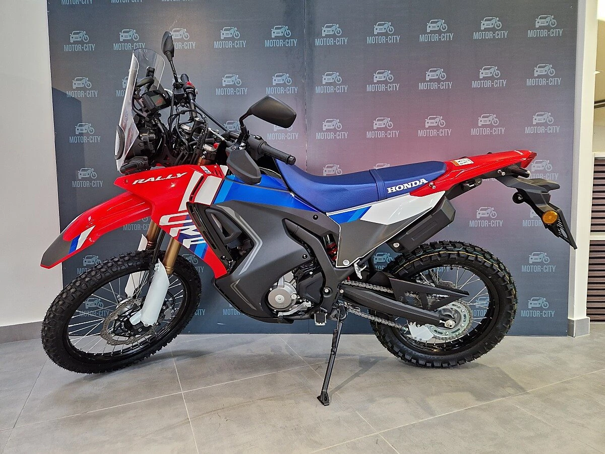 Zum Verkauf steht eine Honda CRF300L Rally. Das Modell kombiniert die Offroad-Fhigkeiten der CRF-Serie mit einer Rally-inspirierten Verkleidung und zustzlichem Komfort fr lngere Strecken.