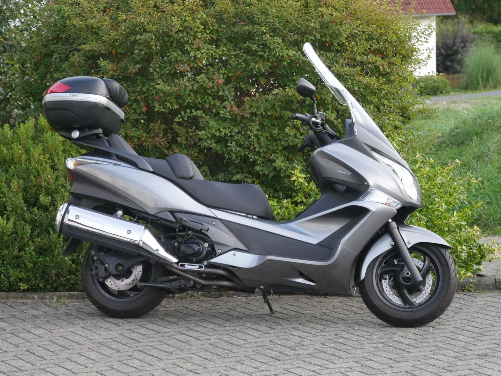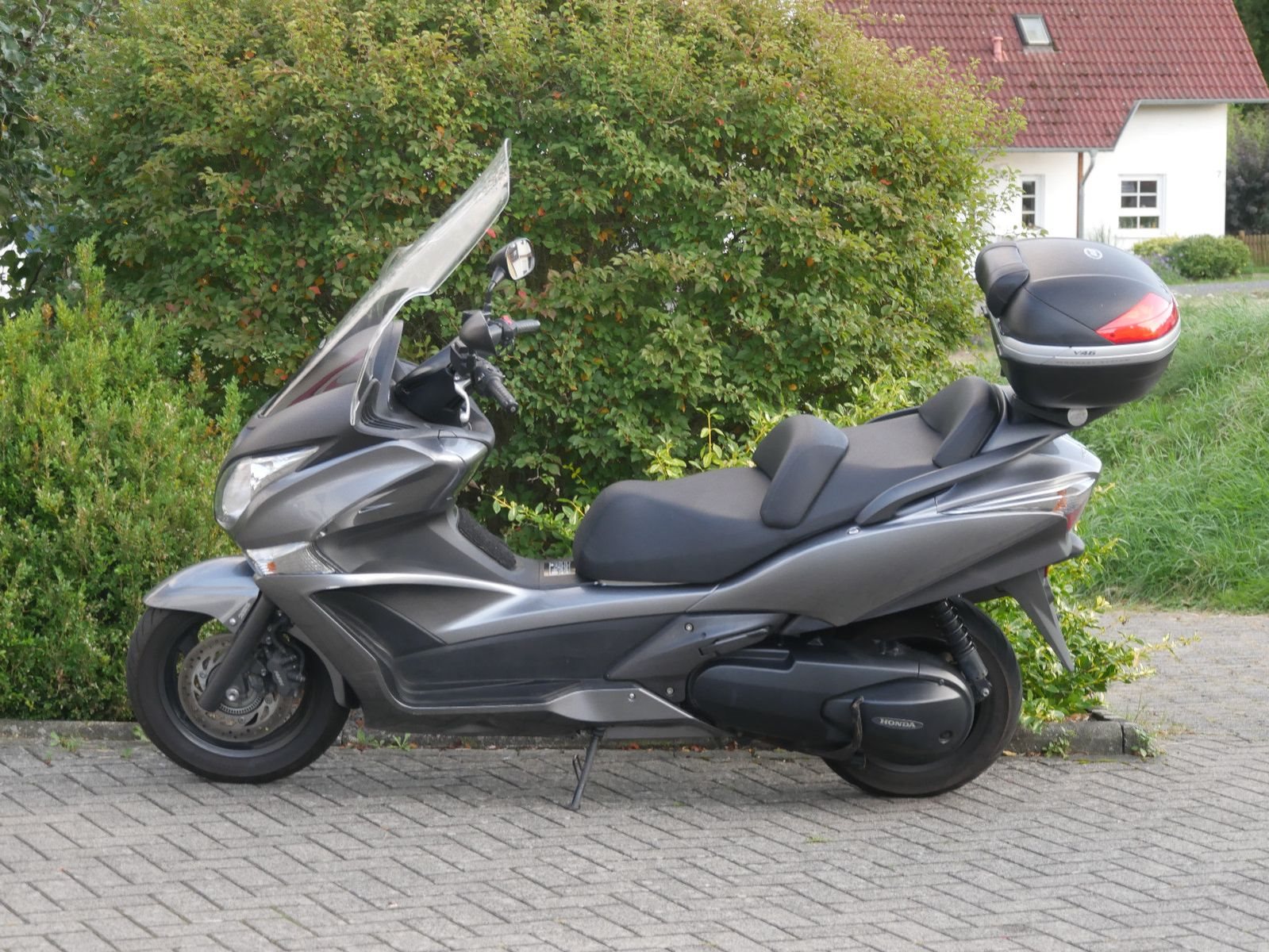Schicker Honda FJS 400 in grau mit hoher Kappa Windschutzscheibe, Griffheizung, Givi-V46 Topcase und Mittelständer. Der Roller hat insgfesamt 6 Wartungen bekommen, die letzte Inspektion bei 40.271km am 08.4.2022. Vor der Auslieferung bekommt die Honda noch eine frische Inspektion.