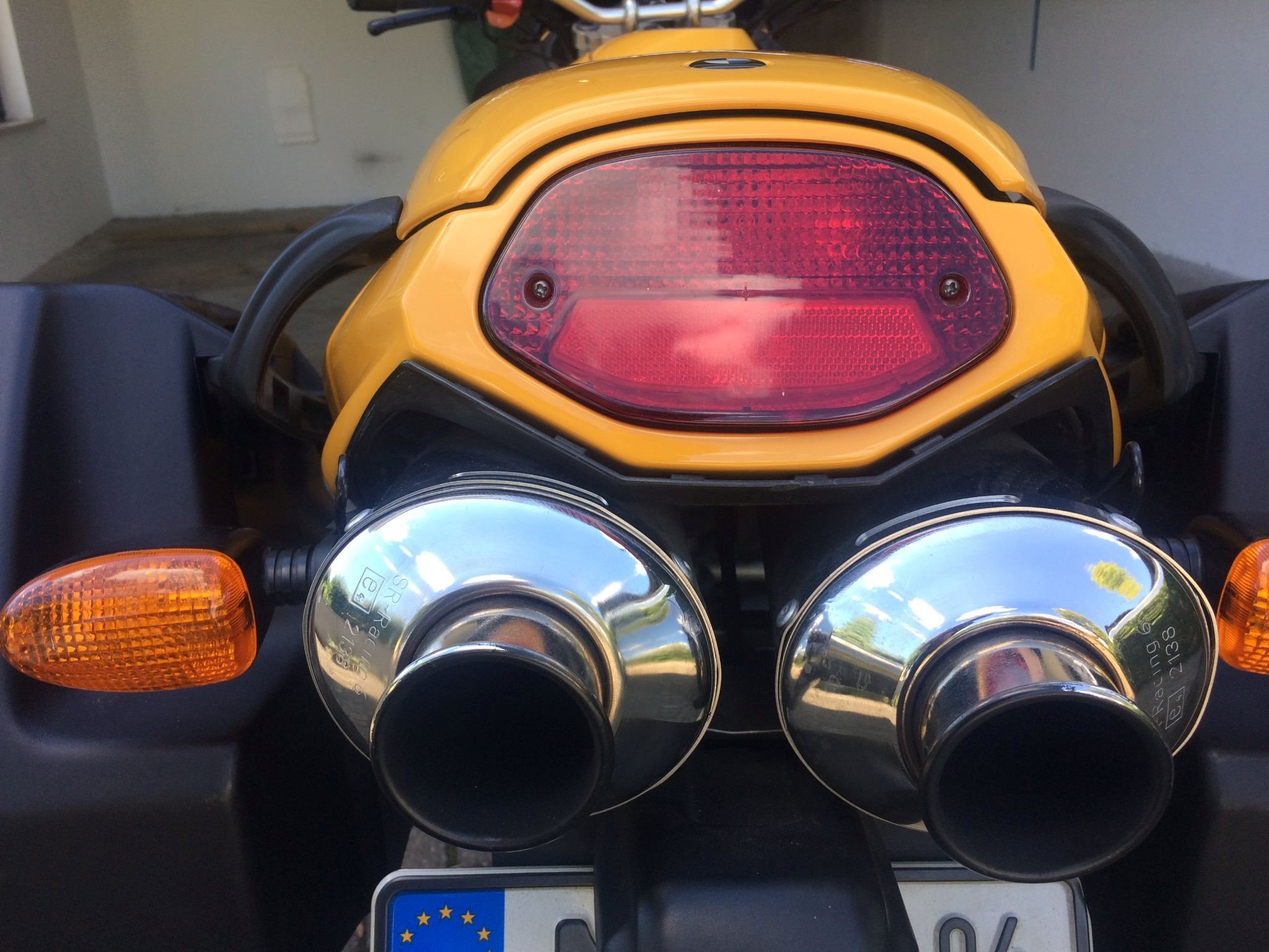 Ausstattung: BMW-Koffer, Wunderlich Tankrucksack, Superbikelenker, Stahlflexbremsleitungen, schwarze Sportscheibe, SR-Racing Endtöpfe, Soziusabdeckung, Hauptständer, alles mit TÜV oder ABE.
