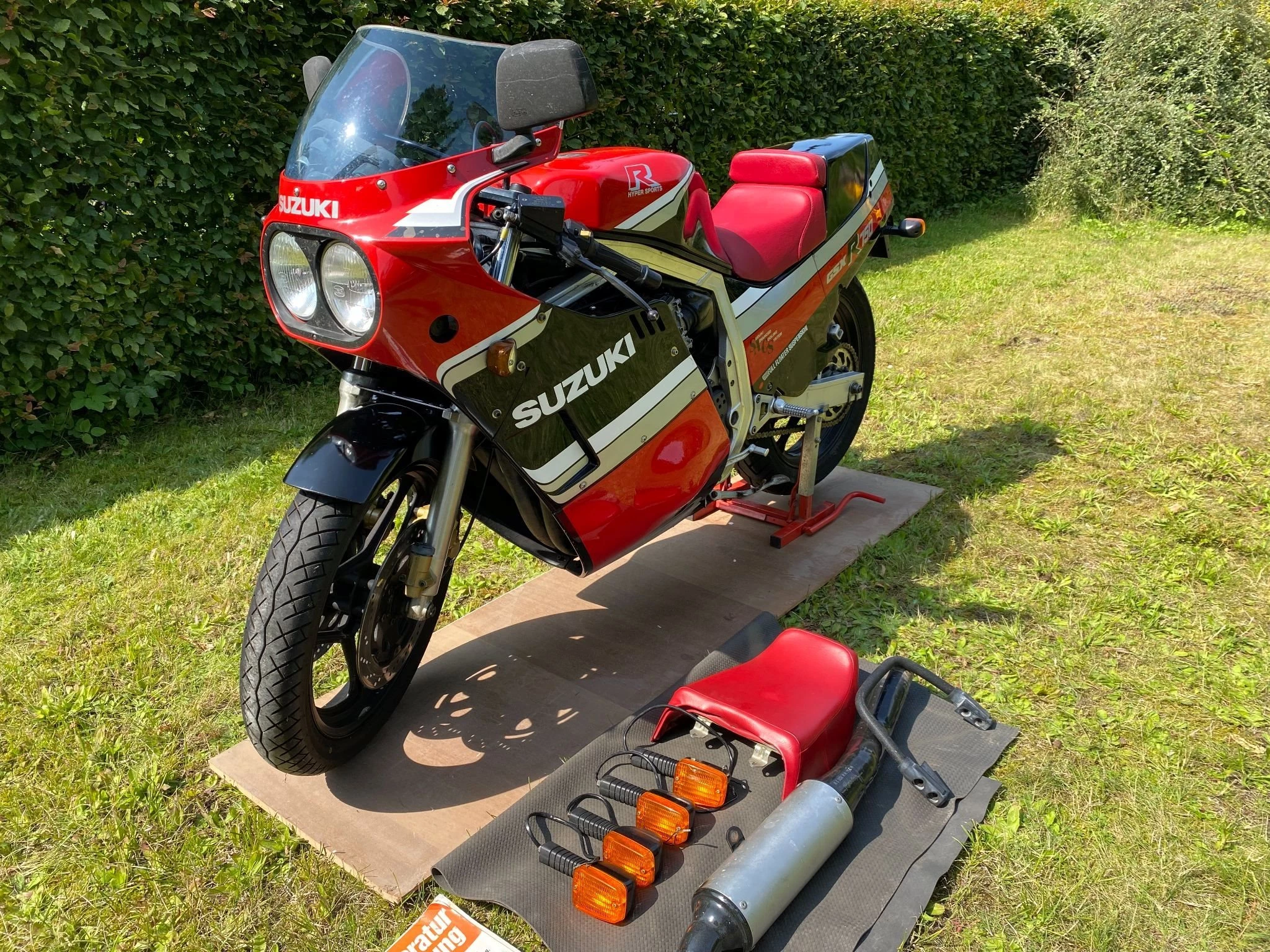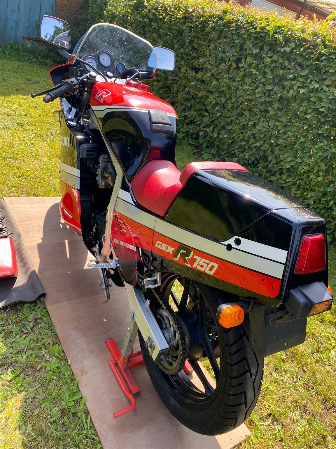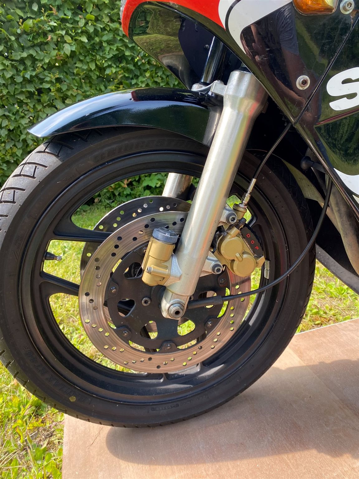 Das Motorrad hatte einen Vorbesitzer und befindet sich seit Mai 1989 in meinem Besitz! 1987 hat die GSX-R nach Unfall einen neuen Rahmen bekommen, daher Bj. '87.