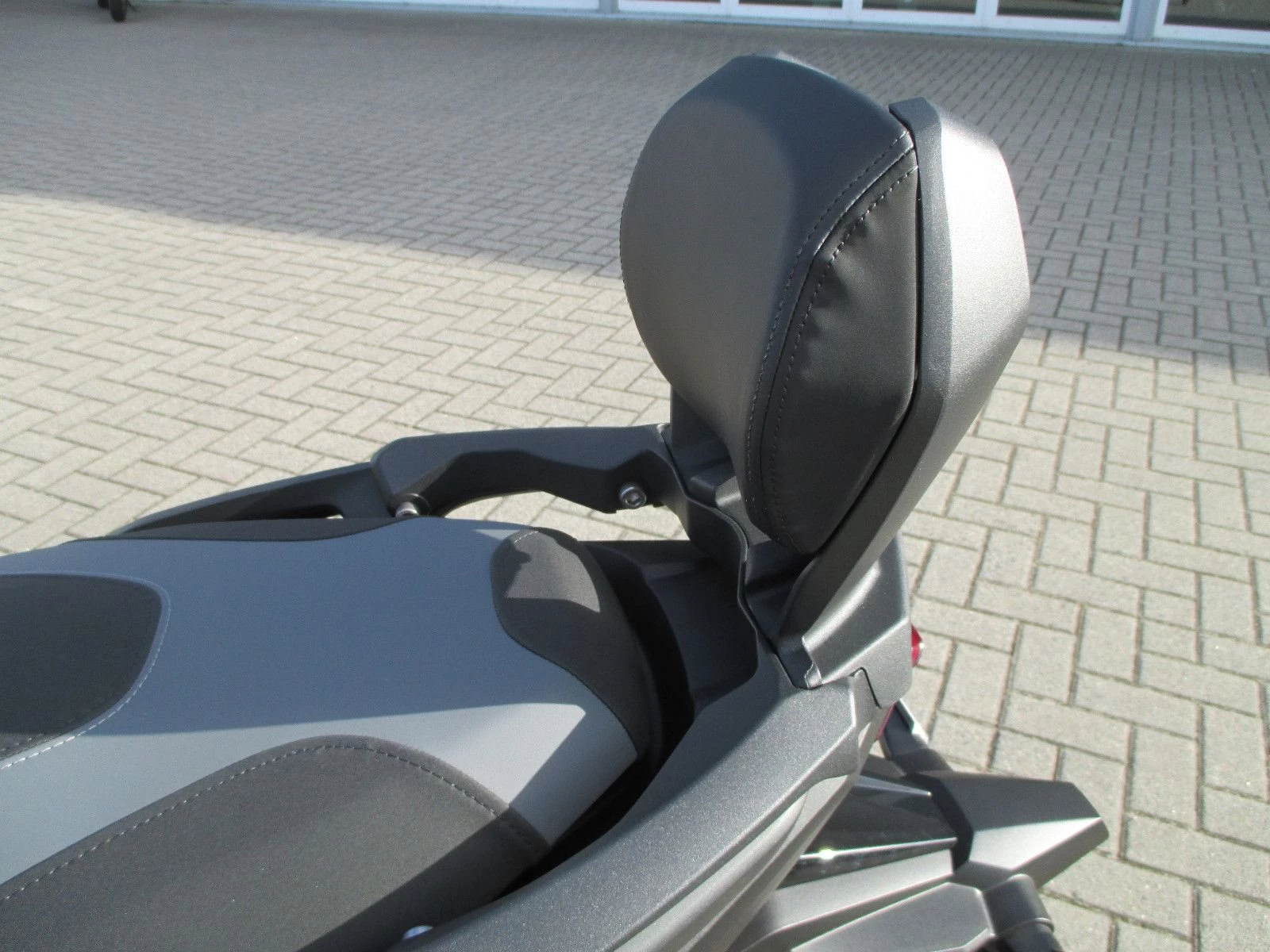 -Durchdacht und praktisch Während sich der ADV350 durch sein robustes Abenteuerdesign auszeichnet, haben wir dafür gesorgt, dass er dem treu bleibt, was große Roller ausmacht: Komfort und Praktikabilität. Der Sitz bietet guten Halt und ist nur 795 mm hoch, damit du mit den Füßen bequem den Boden erreichst. Unter den Sitzen gibt es 48 Liter Stauraum - genug für zwei Integralhelme - und ein Handschuhfach mit USB-Typ-C-Anschluss. Die LED-Beleuchtung im Fach unter dem Sitz verbessert im Dunkeln die Übersicht. Der Windschirm lässt sich in vier Stufen verstellen, sodass du die Höhe und den Winkel an deine Bedürfnisse anpassen kannst. In der hohen Einstellung wird der Luftstrom um deine Schultern herumgeleitet und verringert so bei längeren Fahrten die Ermüdung. Niedrig eingestellt, lässt sie eine kühlende Brise zu, perfekt für Fahrten in der Stadt.
