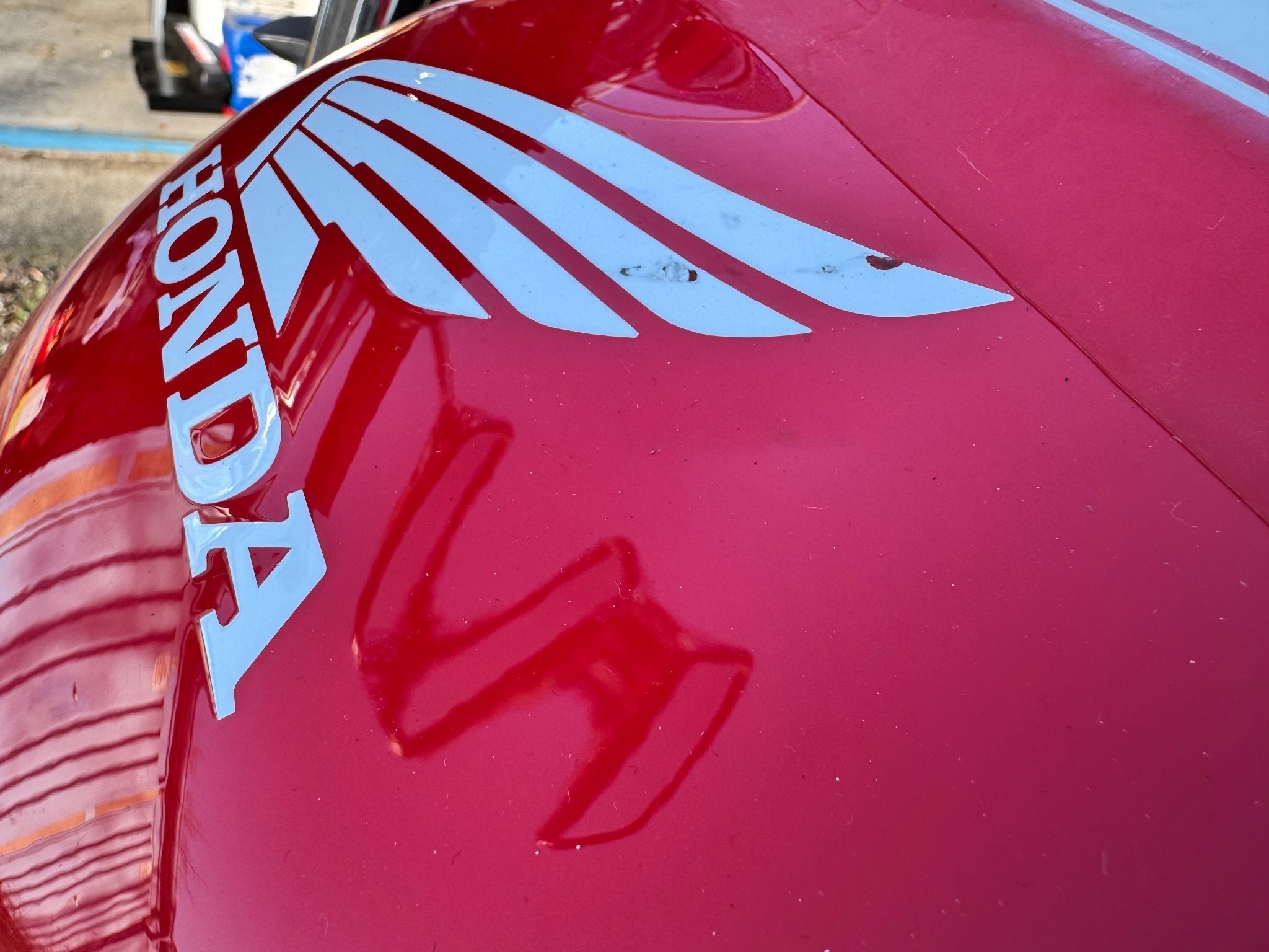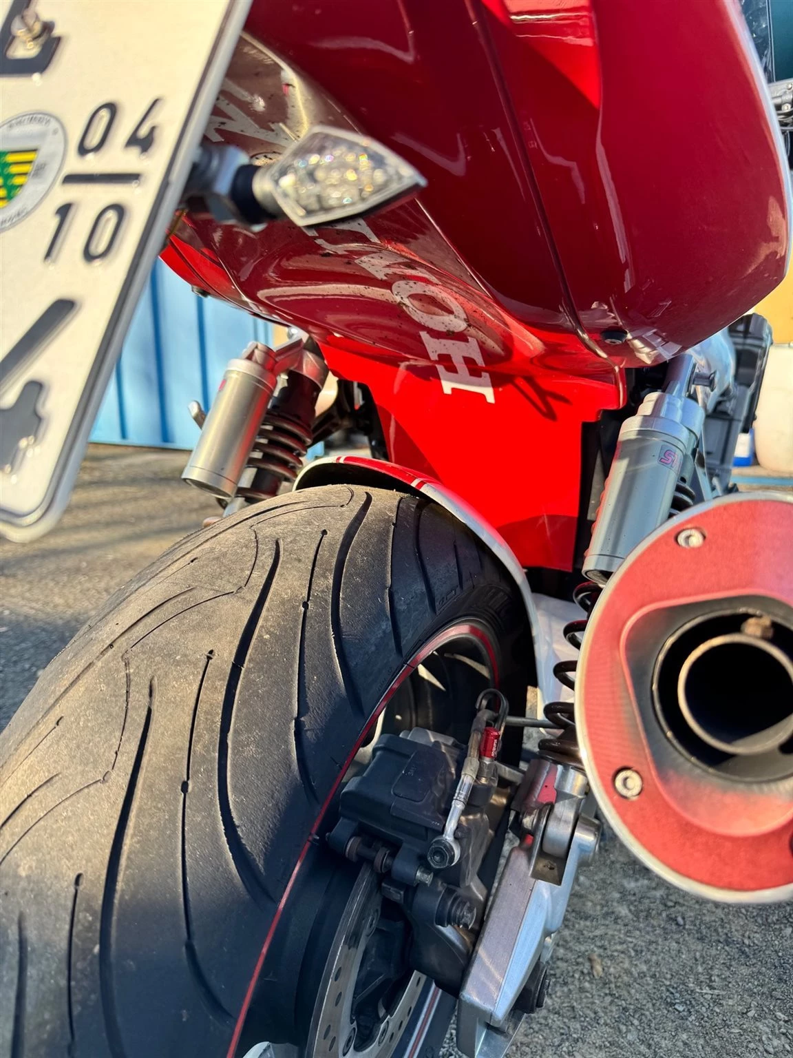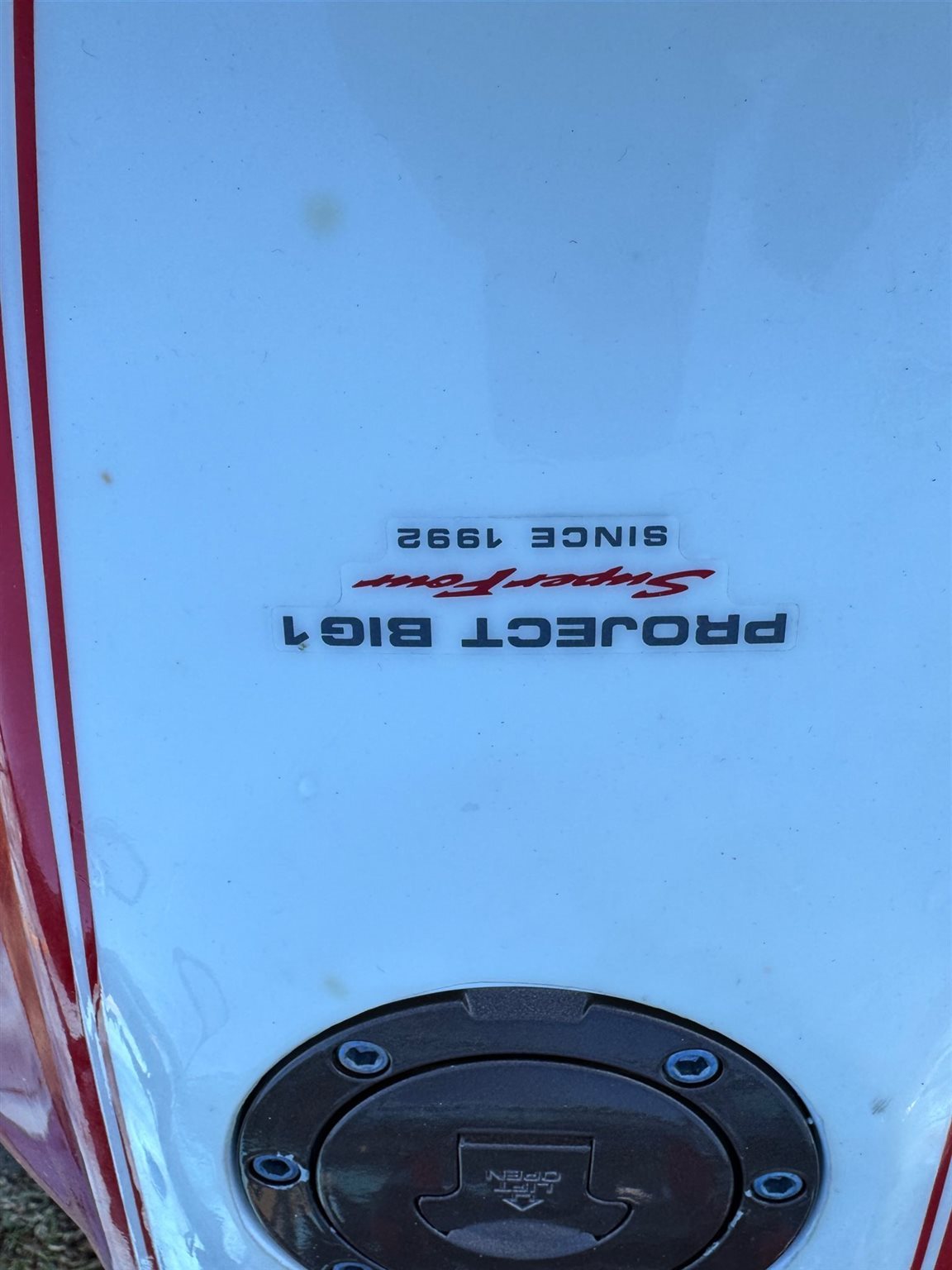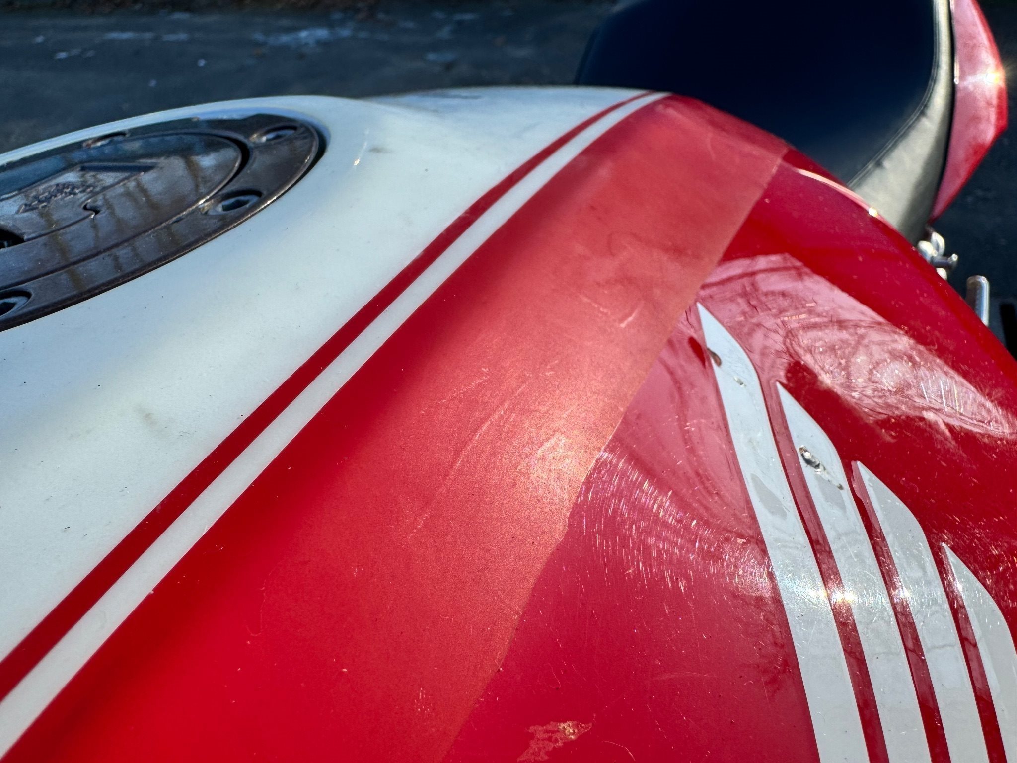 Leider hat die Maschine auch ein paar kleine Macken, so hat der Heckspoiler einen kleinen Riss und der Tank hat durch einen Umfaller der anderen in der Garage abgestellten Maschine eine kleine Delle. (beides ist auf den Bildern zu sehen)