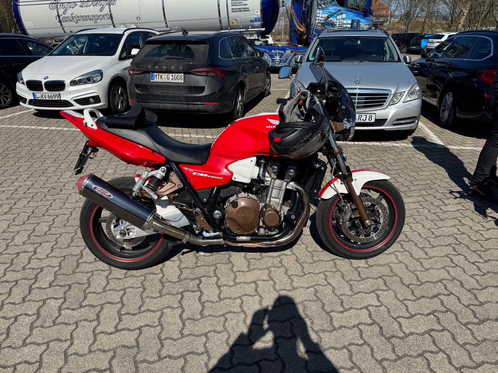 CB 1300 (SC54) ohne ABS, also noch die erste Variante. Sonderlackierung mit braun-metallic an besonderen Stellen sowie einer "umgekehrten" rot-weiß Lackierung.