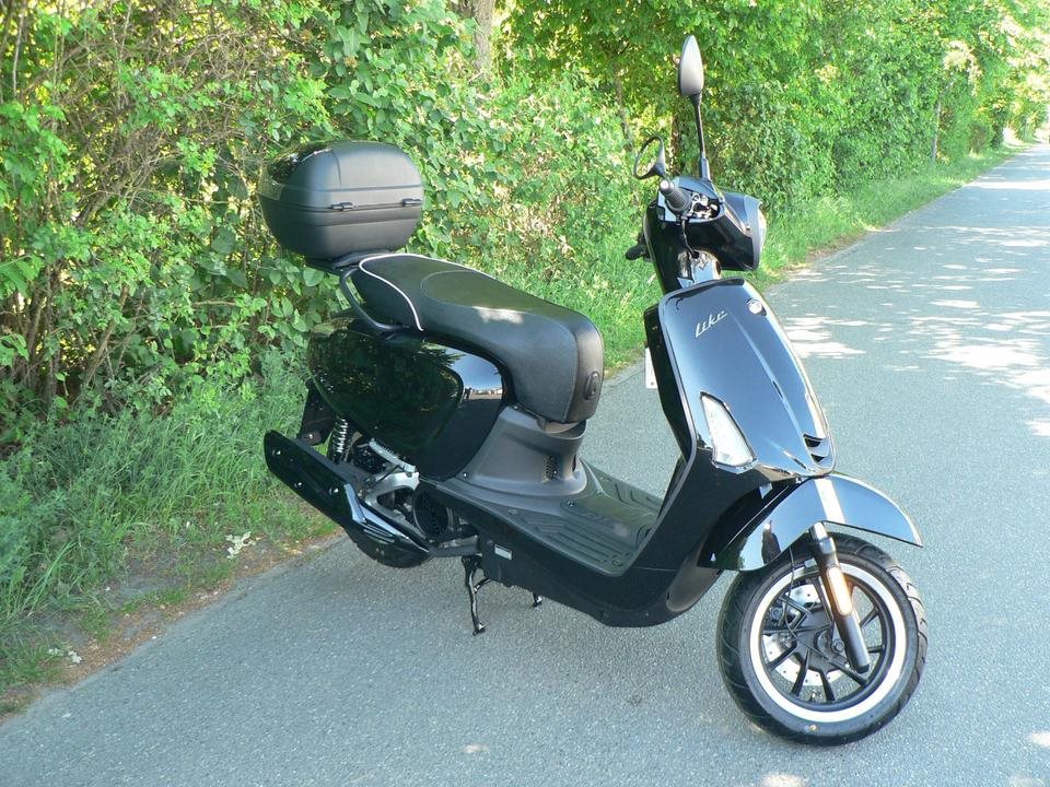 Der Roller in der Farbe schwarz wurde nur mit dem Roten-Kennzeichen Probegefahren