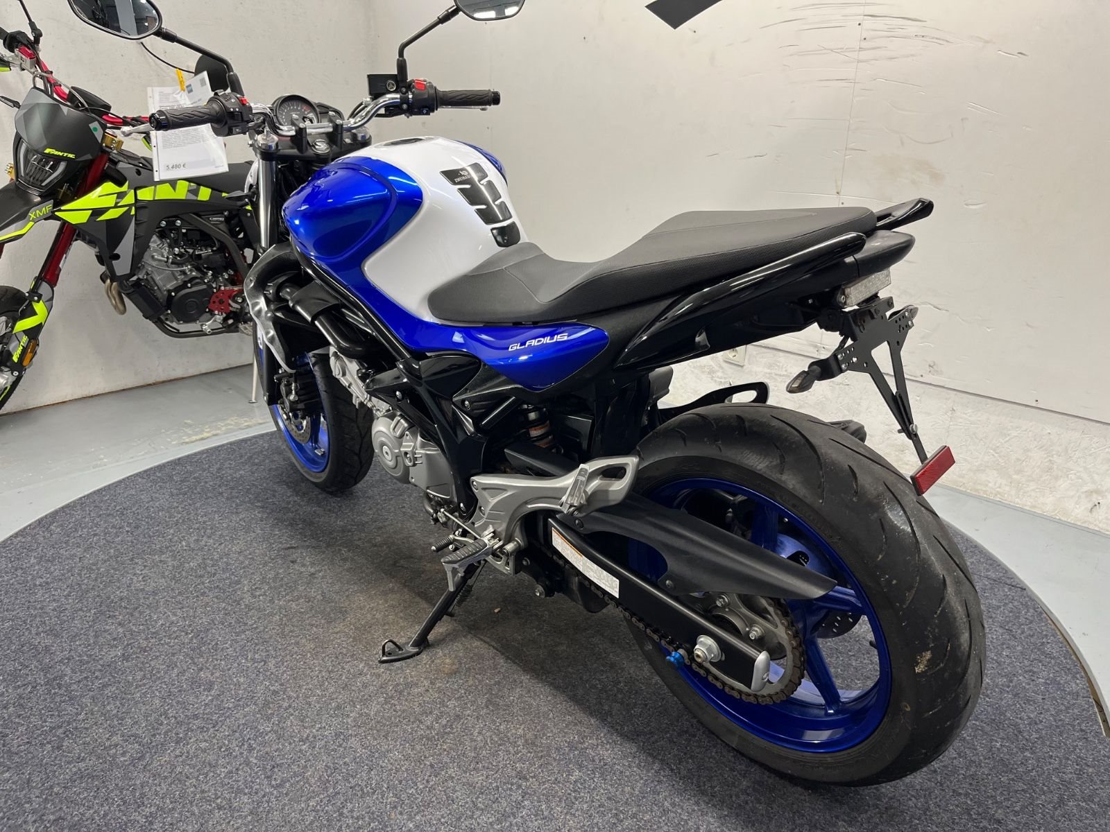 - Die Suzuki Gladius 650 ist in einem gepflegten Zustand