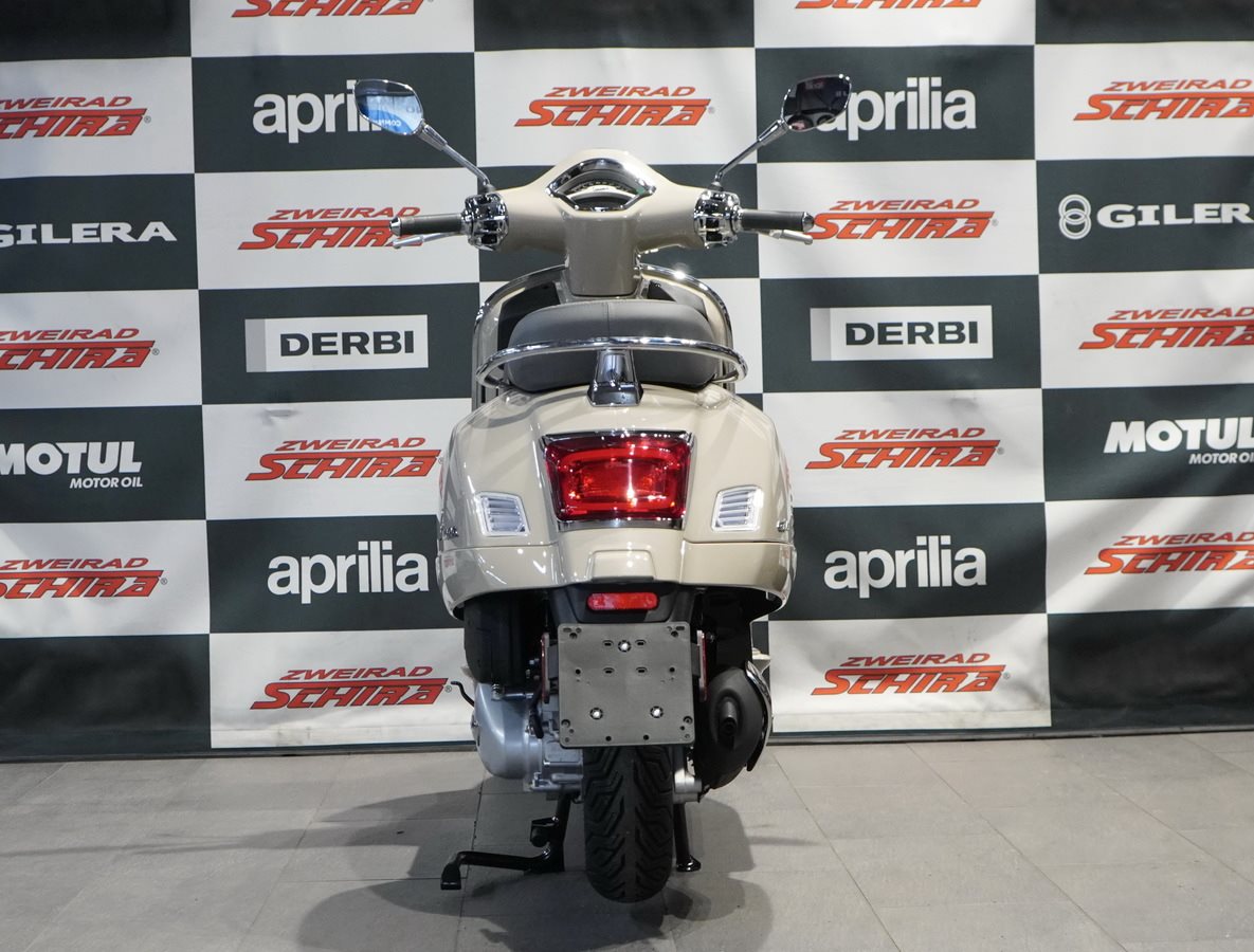 Die Vespa Gts ist bis ins kleinste Detail durchdacht. Die Metallic-Farben glänzen, Sitzbank und Interieur sind aufeinander abgestimmt, die Chromelemente sorgen für das gewisse Extra an Eleganz und natürlich trägt die berühmte Krawatte weiterhin zum Status der Vespa als zeitlose Ikone bei.