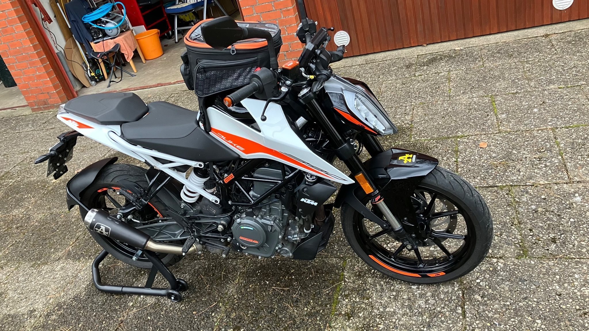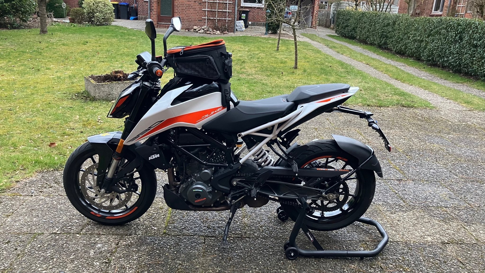 Zum Verkauf steht eine extrem wenig gefahrene, scheckheftgepflegte und immer in der Garage geparkte Duke 390 mit recht vielen PowerParts original von KTM.