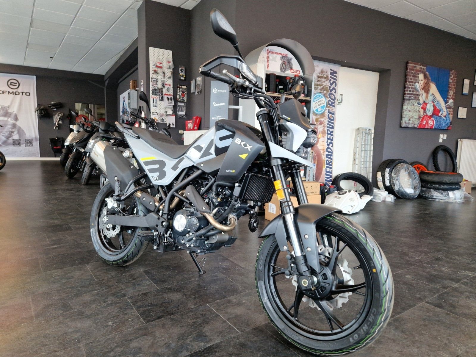 Das Herzstück der BKX 125 S, untergebracht im neuen Stahlgitterrahmen, ist ein leistungsstarker 125-ccm-Einzylindermotor nach Euro 5+, der 15 PS liefert. Effizient und reaktionsschnell, sorgt er dank des 12-Liter-Kraftstofftanks zudem für eine Reichweite von bis zu 500 km. Die BKX 125 S bietet ein modernes und umfangreiches Ausstattungspaket, einschließlich eines Bremssystems mit 280-mm-Scheibe vorne und Vierkolben-Radialbremszange, kompletter LED-Beleuchtung - mit markanten vorderen LED-Leuchten und integrierten hinteren Blinkern - sowie einem kompakten, leicht ablesbaren LCD-Display. Mit einer Sitzhöhe von 820 mm, einem geringen Gewicht von 142 kg und komfortabler Ergonomie ist sie zugänglich und perfekt für ein breites, vielfältiges Publikum geeignet.