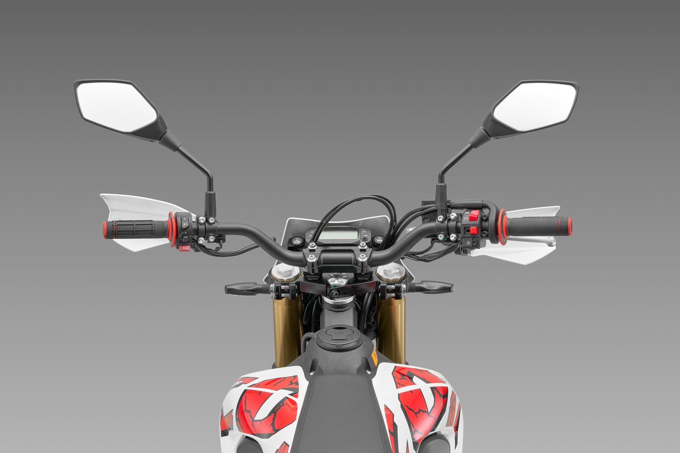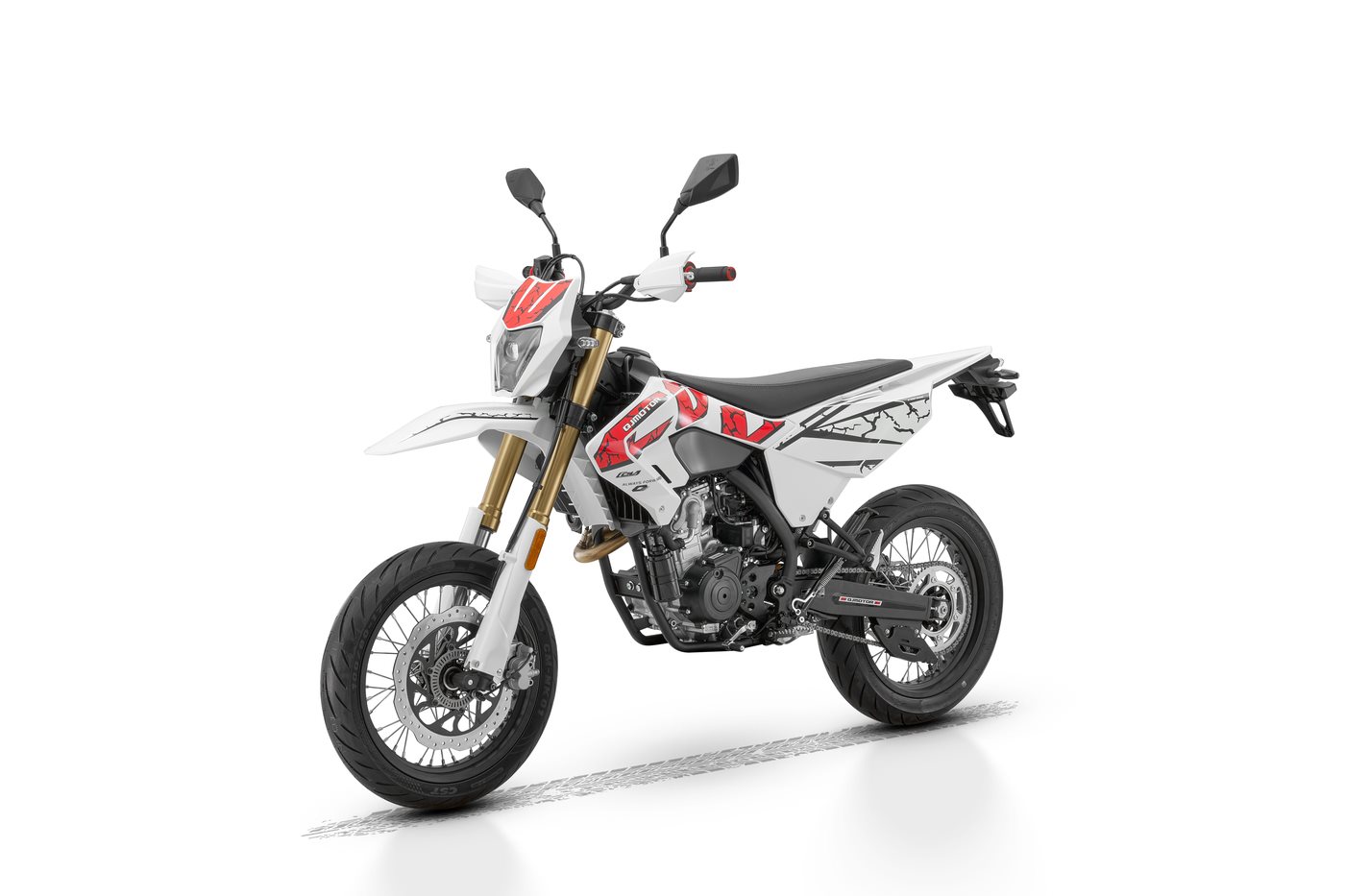 Die COV 125 SM ist der perfekte Einstieg in die Offroad- und Supermoto-Welt: leicht, wendig und mit sportlichem Look. Der flüssigkeitsgekühlte 125 cm 1-Zylinder liefert 15 PS (11 kW) und 12,1 Nm Drehmoment ideal für Stadt, Landstraße und tägliche Wege. Das 6-Gang-Getriebe sorgt für dynamisches Fahrgefühl, während die Upside-Down-Gabel und das stabile Fahrwerk ein sicheres Handling bieten. Für zuverlässige Verzögerung sorgen Scheibenbremsen vorne und hinten. Mit nur 129 kg fahrfertig, 8 Liter Tankvolumen und einer Sitzhöhe von 860 mm ist die COV 125 SM bereit für jedes Abenteuer.