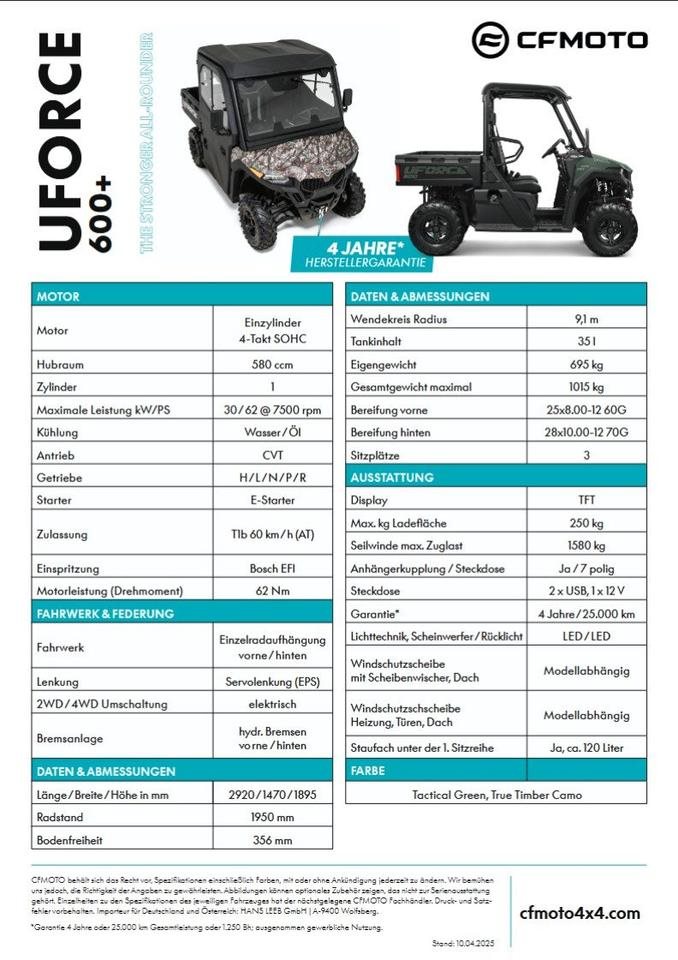 Kraftvoll, wendig, robust. Kaum ein anderes UTV kombiniert diese Eigenschaften so perfekt wie die neue UFORCE 600+. Ob beim Arbeitseinsatz oder dem Weg ins naechste Abenteuer mit leistungsstarkem Einzylindermotor, ueberzeugender Gelaendegaengigkeit und hochkomfortabler Ergonomie punktet die UFORCE 600+ in jedem Einsatzbereich.