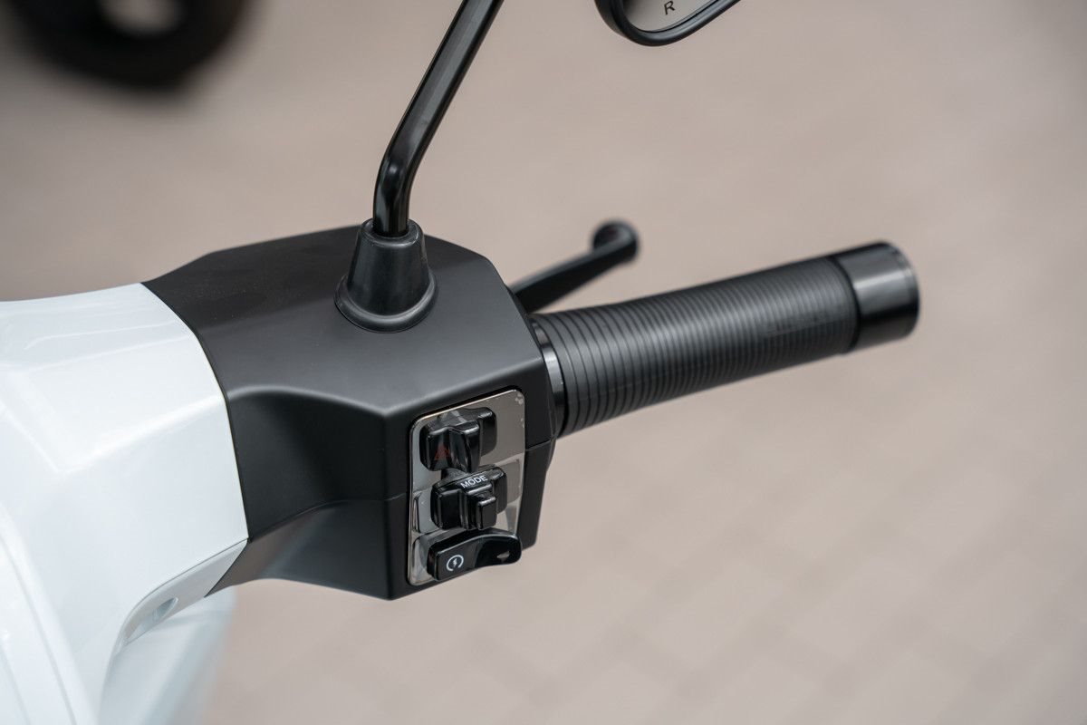 • Bereifung: 12-Zoll-Leichtmetallfelgen mit breiten Reifen (120/70 vorne, 130/70 hinten).
