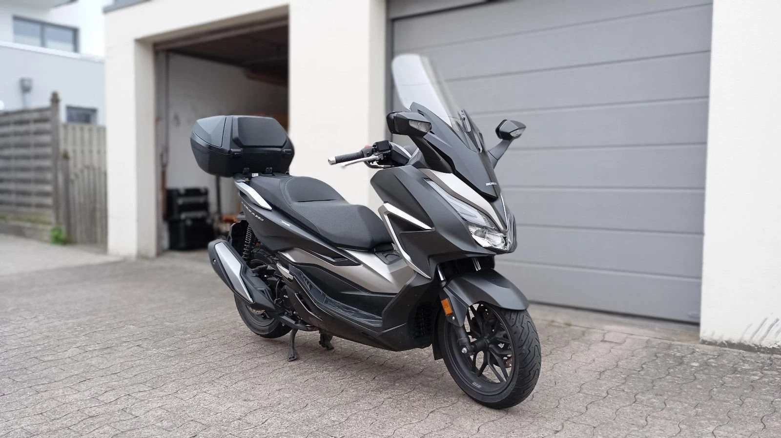 Zum Verkauf steht ein gepflegter Honda Forza 350 aus dem Jahr 2021 - der perfekte Begleiter für Stadtverkehr und längere Touren gleichermaßen.