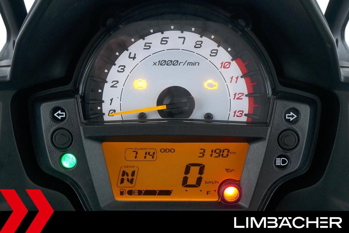Eine scheckheftgepflegte Kawasaki Versys 650 aus zweiter Hand in sehr gepflegtem Zustand u.a. mit kurzem Kennzeichenhalter und Ganganzeige.