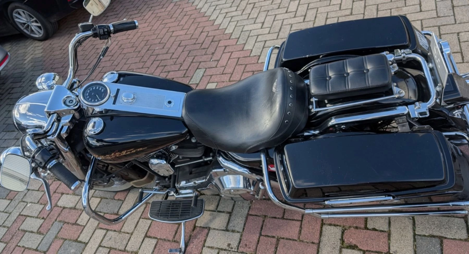 Road King, schwarz-chromViele Chromteile, Fishtail, Sitzbrötchen für coole Optik, neue Weißwandreifen, Windschutz, 2x große Scheibe, S&S Luftfilter original, Original Auspuff, neue Sturzbügel, weiße Blinker, geschwäztes Rücklicht, alles eingetragen! Immer in der Garage, nur im Sommer gefahren, immer zuverlässig, drauf setzen und losfahren!Kein Notverkauf!