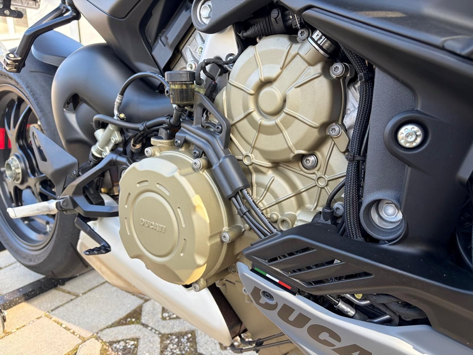 Transparenz ist mir wichtig: Das Motorrad ist einmal im Stand ohne Fremdeinwirkung langsam zur Seite gekippt (kein Unfall, kein Aufprall). Dabei entstanden lediglich leichte kosmetische Spuren. Der leicht verkratzte Kupplungsdeckel wurde vorsorglich fachgerecht in einer Ducati Fachwerkstatt erneuert. Ein Winglet weist minimale Kratzer auf. Technisch ist das Motorrad einwandfrei und sofort fahrbereit.