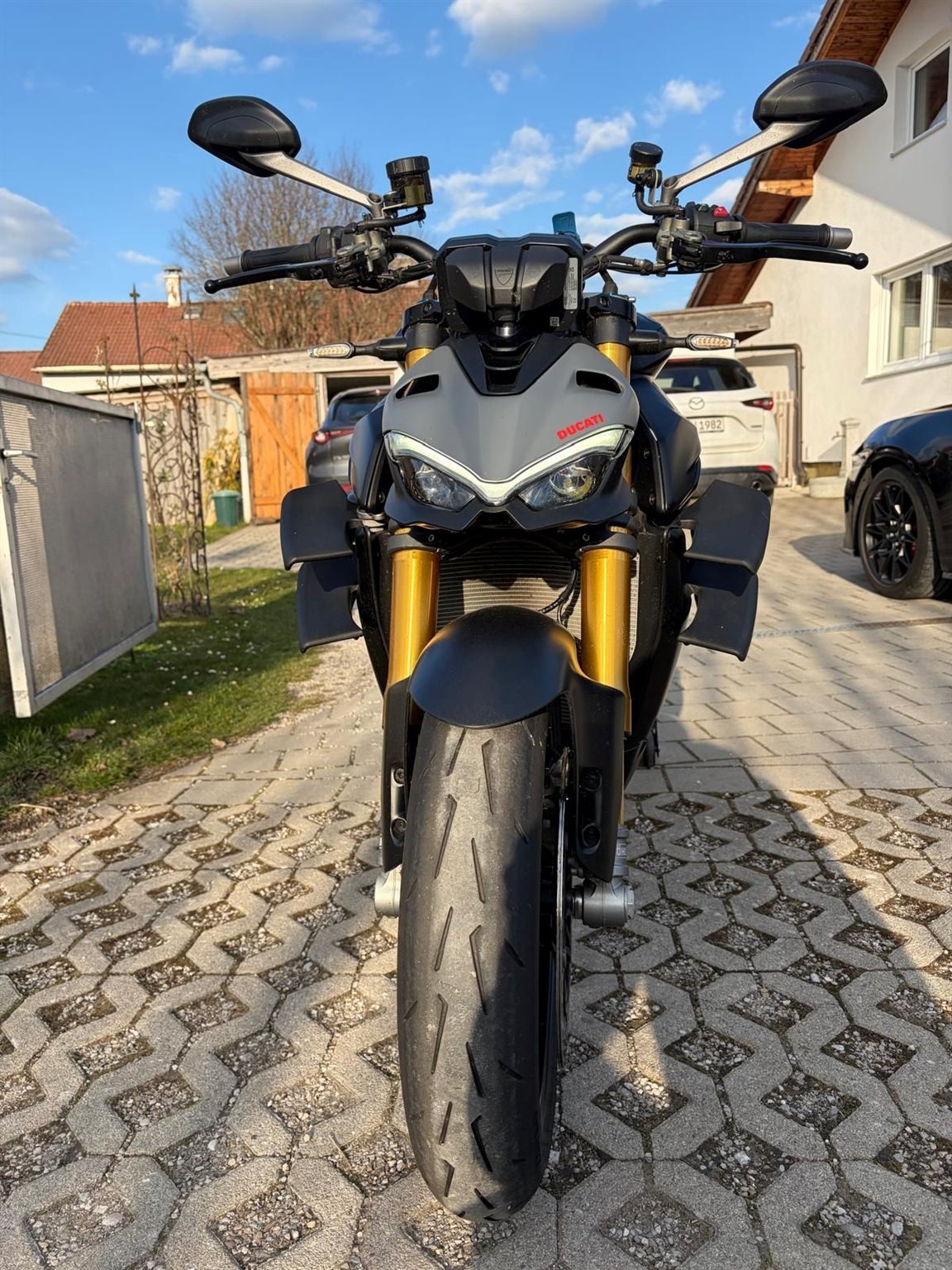 Öhlins Fahrwerk, Quickshifter, Fahrmodi, TFT, LED, Brembo, originale Ducati Heizgriffe