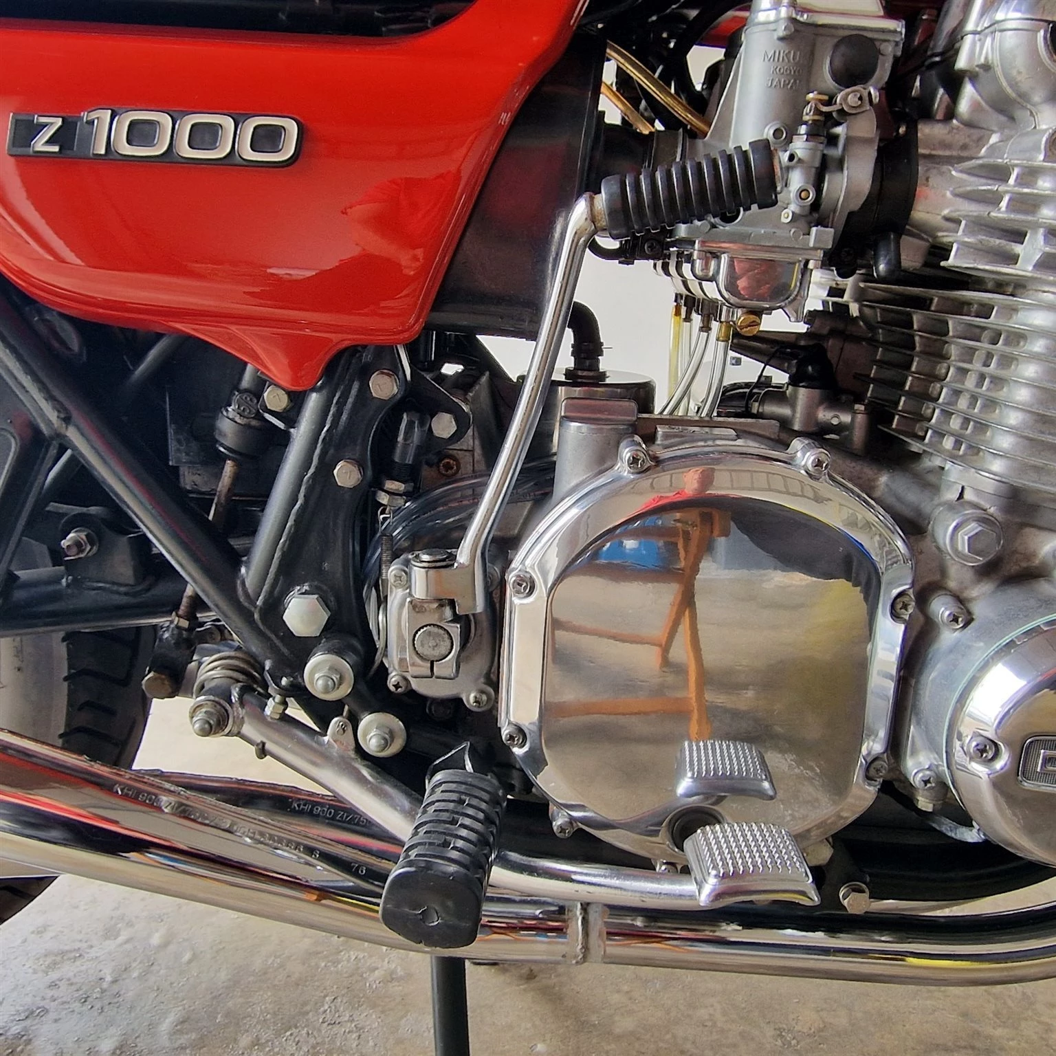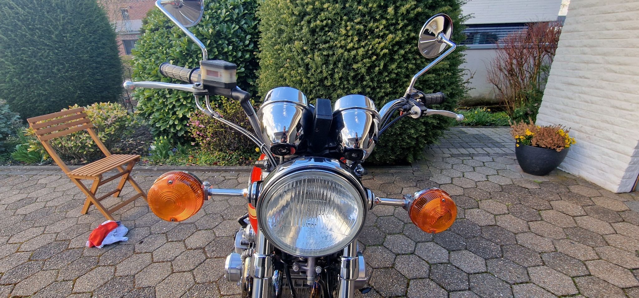 Die beiden Spiegel, die etwas kürzer sind als die Originalen wurden 2025 erneuert. So wurden auch die Tachoschalen durch Chromschalen ersetzt. Die schwarzen Originalschalen sind ebenfalls vorhanden. Die Motordeckel, Ventildeckel sowie die Schwimmerkammerngehäuse und die Vergaserdeckel wurden durch eine Spezialfirma hochglanzpoliert.