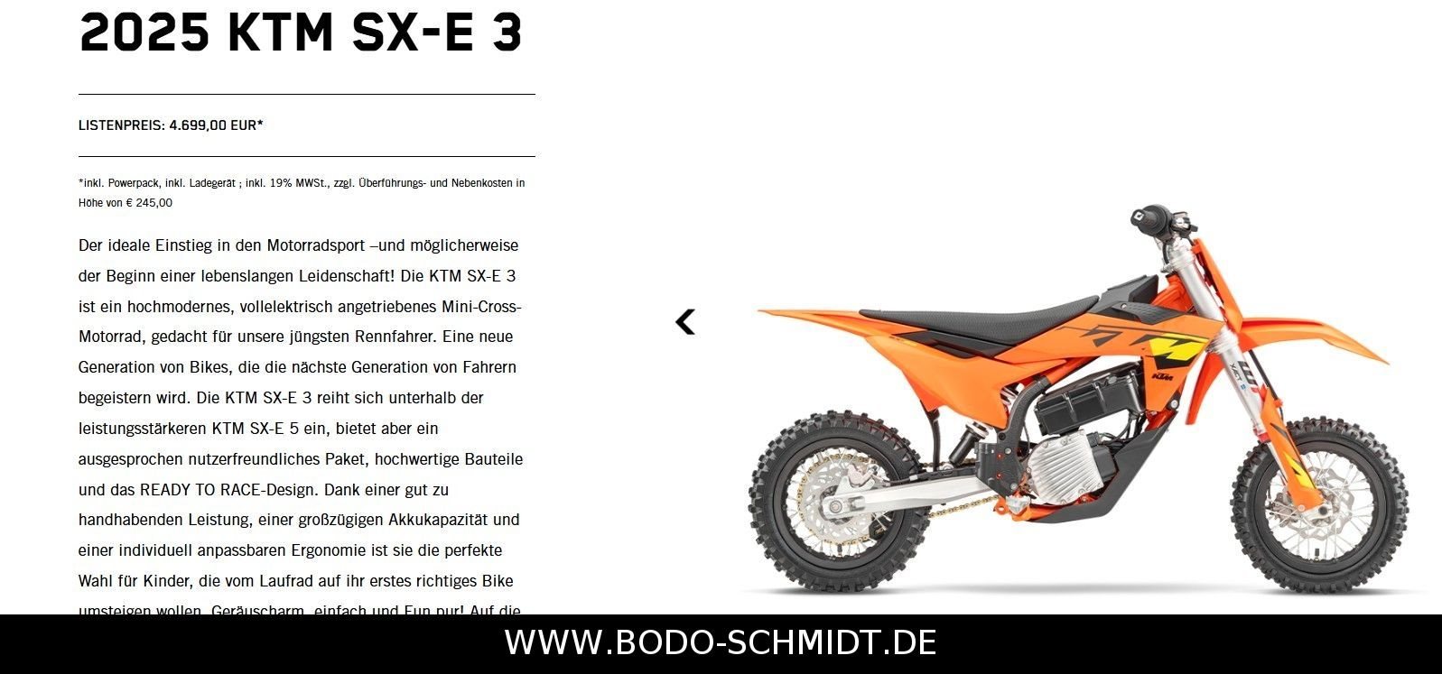 ?inkl. Powerpack, inkl. Ladegerät ; inkl. 19% MWSt., zzgl. Überführungs- und Nebenkosten in Höhe von € 245,00