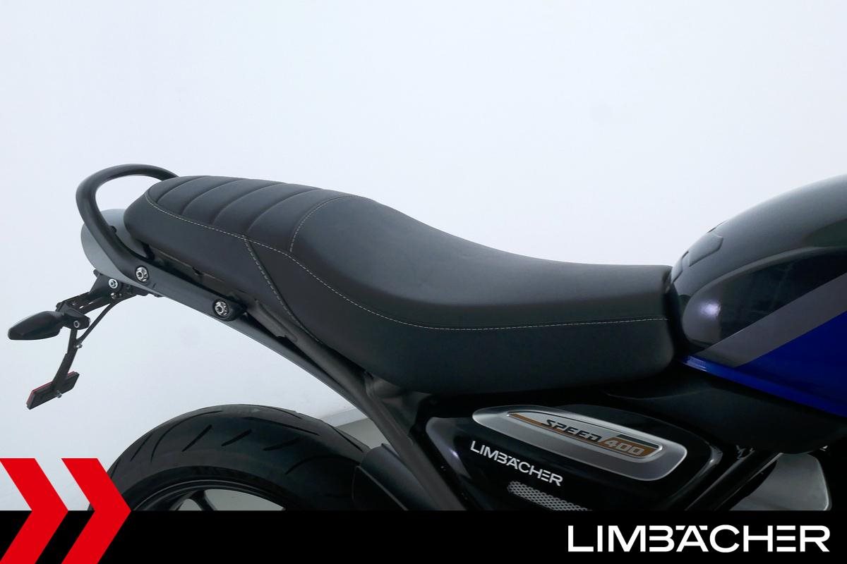 Eine scheckheftgepflegte Triumph Speed 400 aus erster Hand in Topzustand u.a. mit kurzem Kennzeichenhalter sowie probrake-Hebeln.
