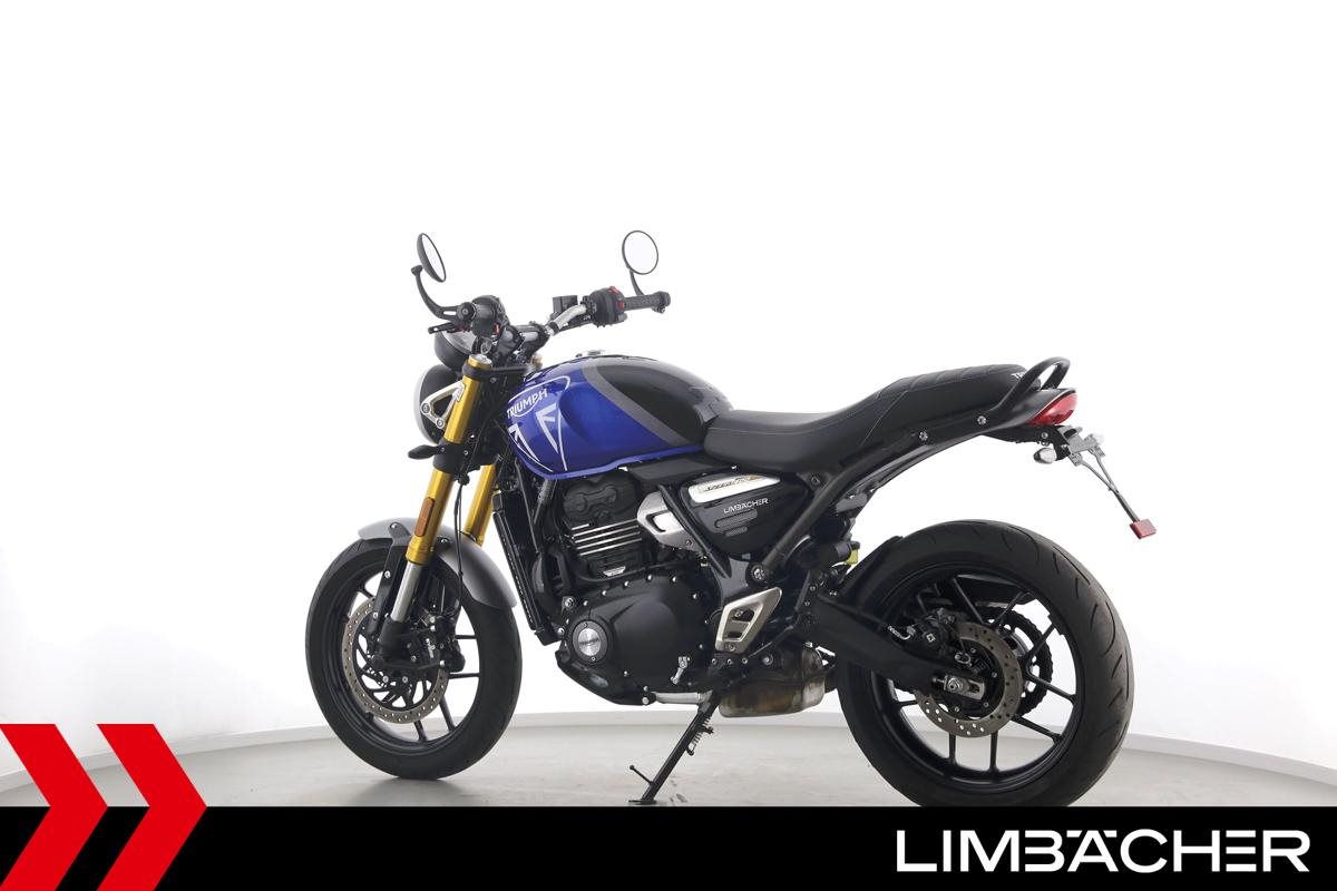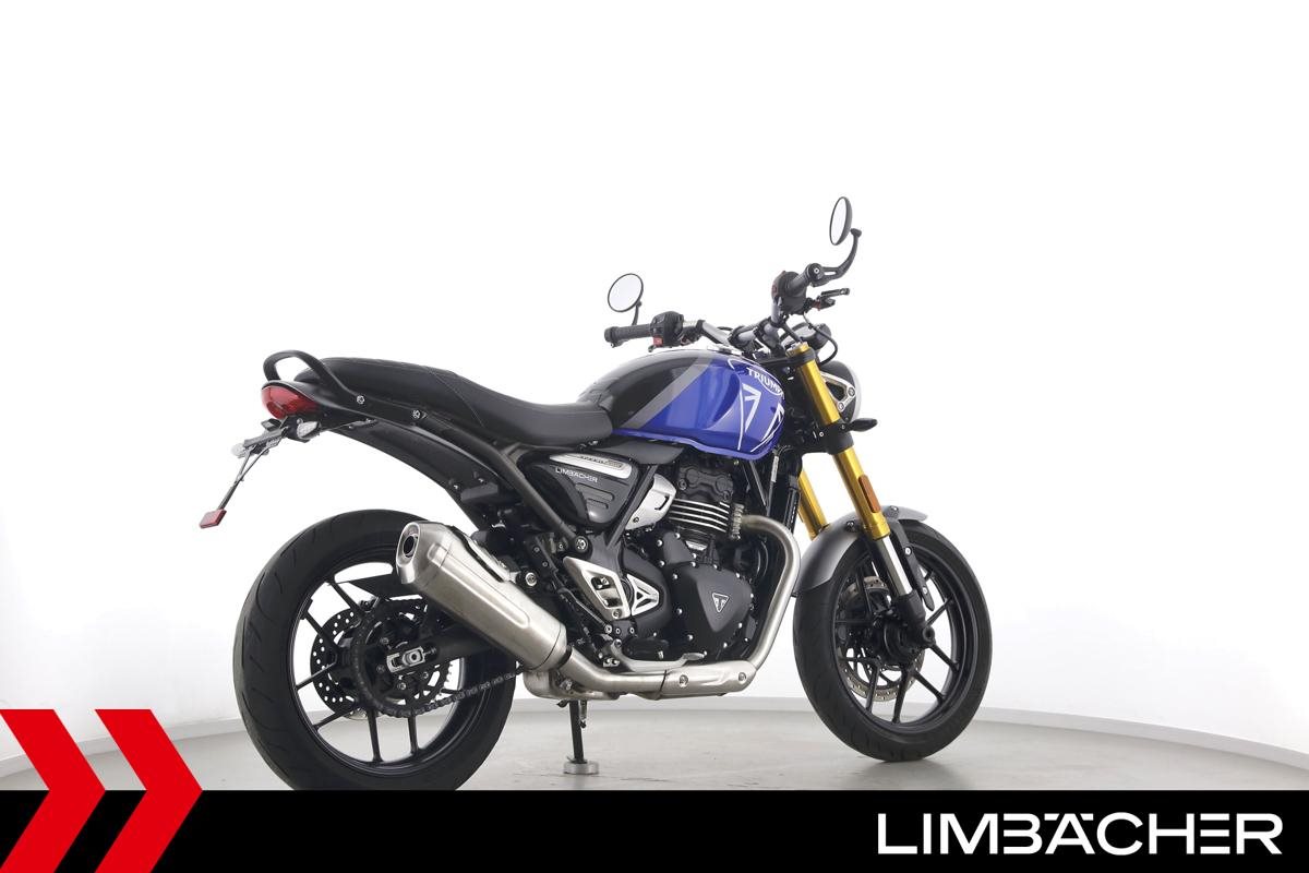 Wir bieten hier eine Triumph Speed 400 mit einer neuen Jahresinspektion inklusive 40-Punkte-Durchsicht. Alle unsere Fahrzeuge werden mit mindestens einem Jahr TÜV übergeben.