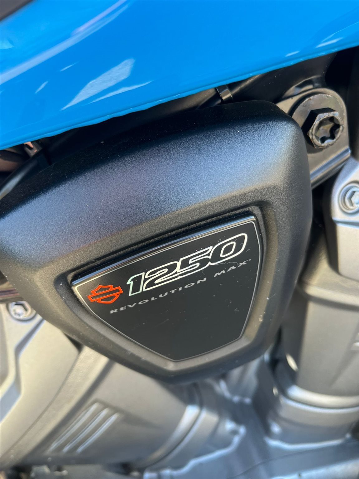 Gut gepflegte, wenig gefahrene Harley Davidson Pan America 1250 Spezial in Vollausstattung, Lackierung Blau/Gelb.
