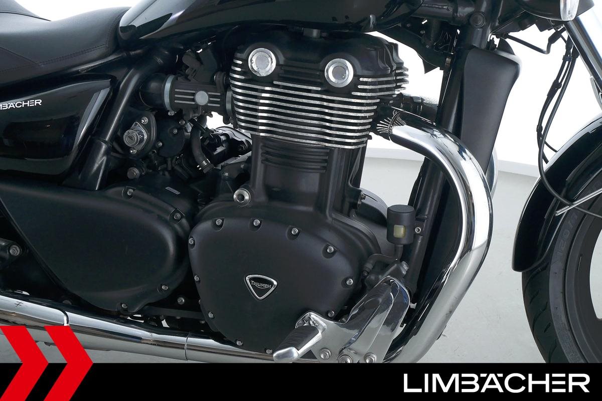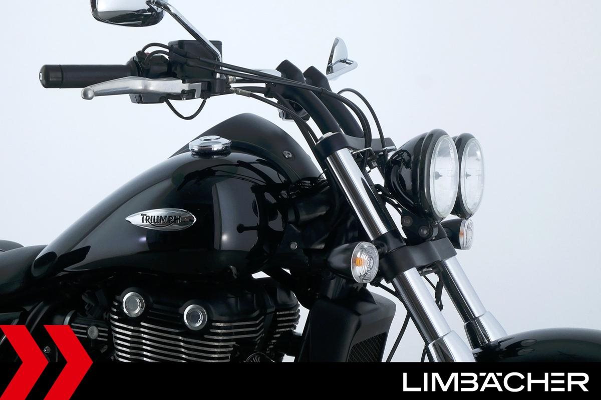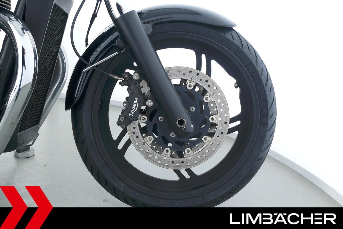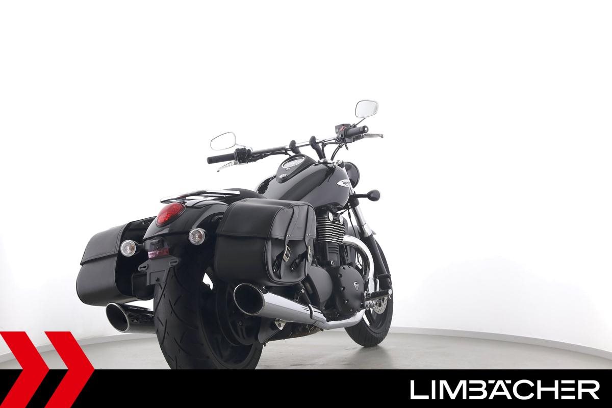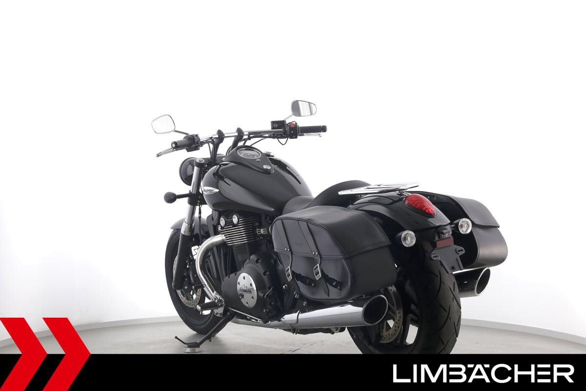 Eine Triumph Thunderbird Storm 1700 in sehr gepflegtem Zustand u.a. mit Chrom-Gepäcktrager sowie Triumph-Ledertaschen.