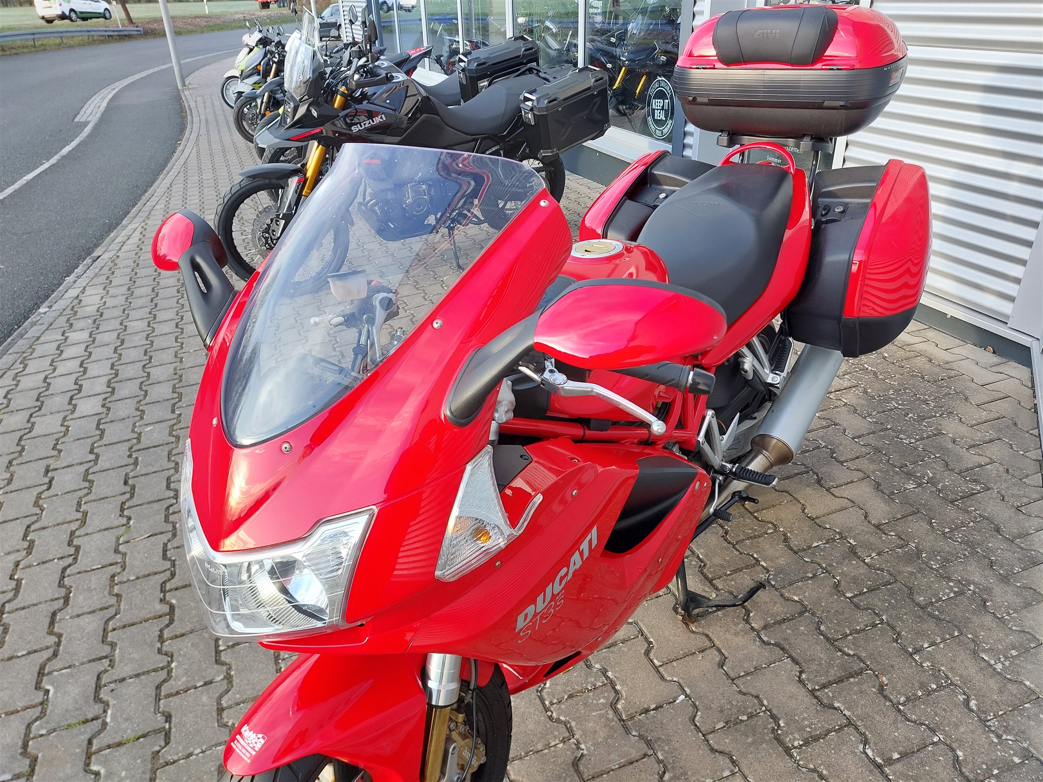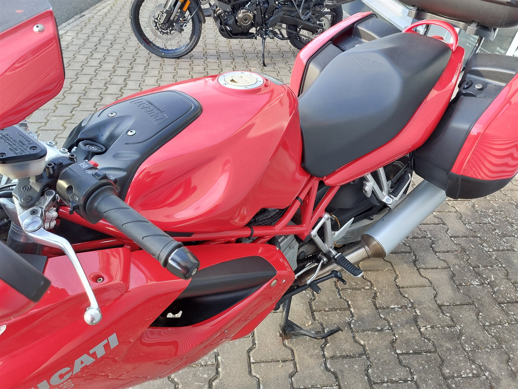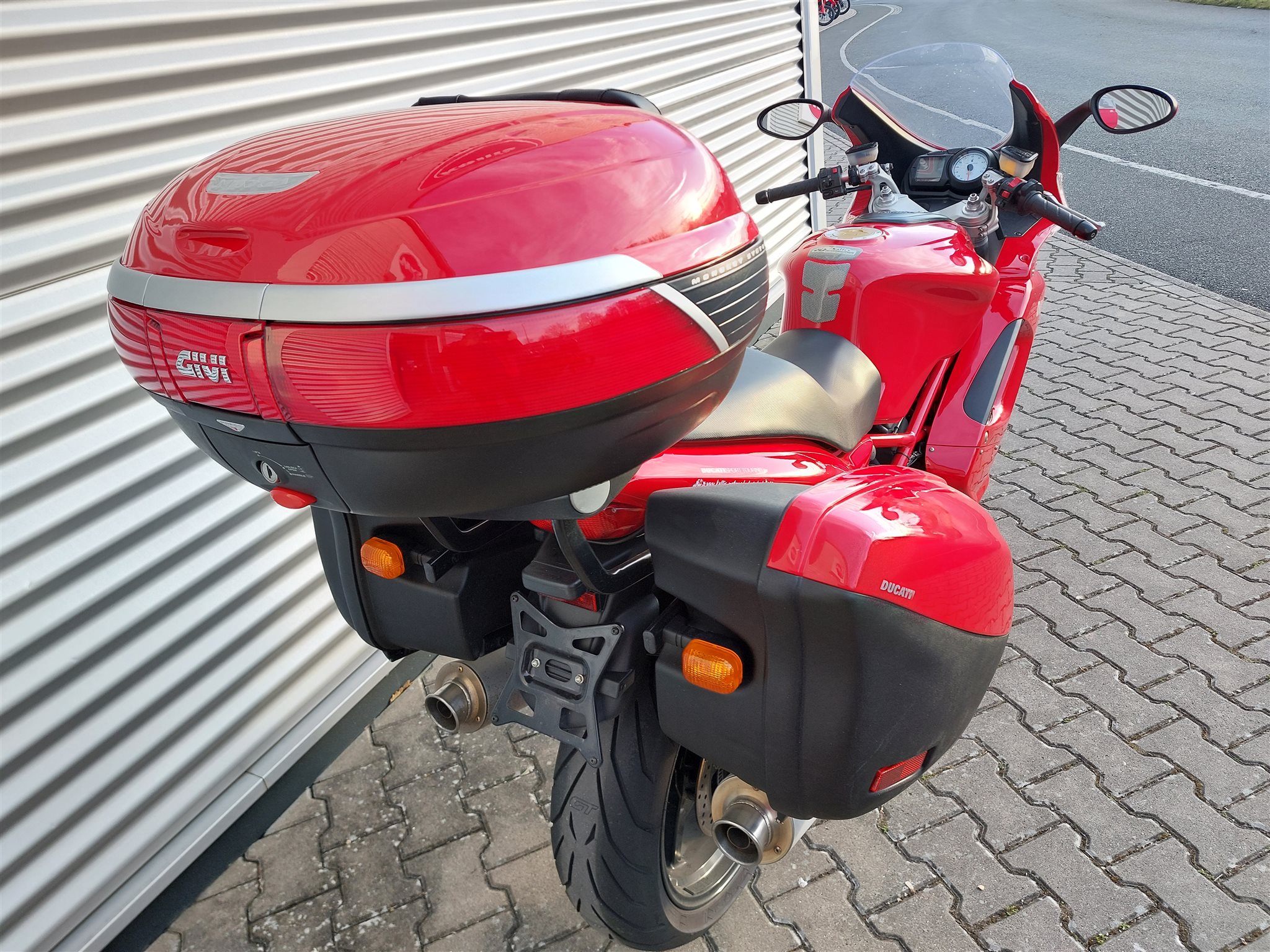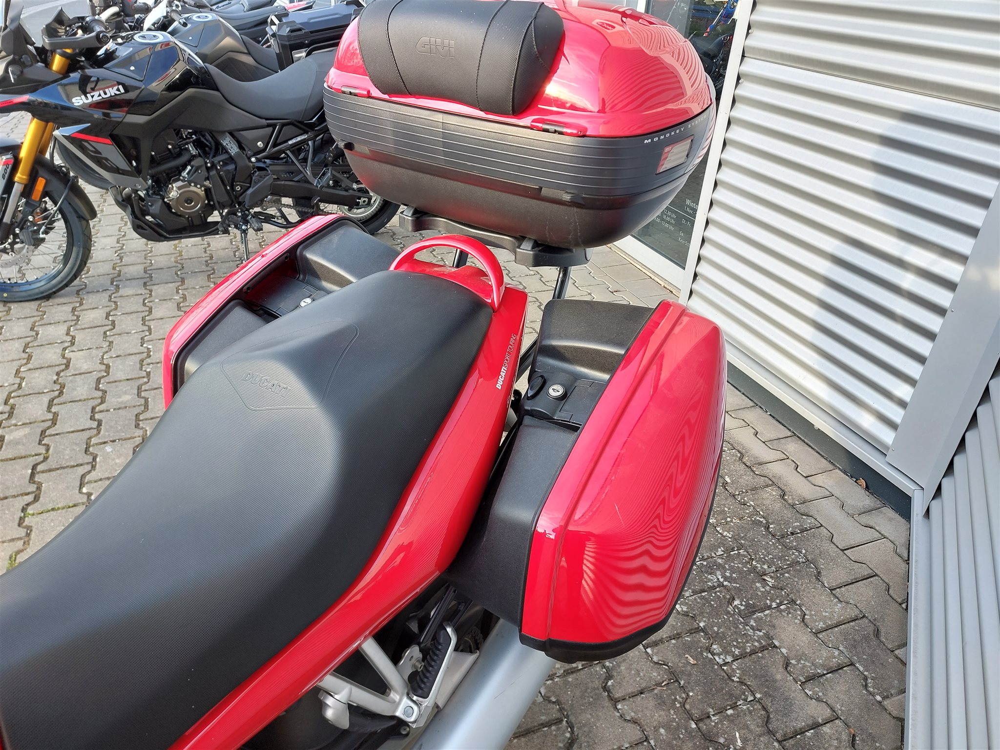 Mit Koffer und Topcase Ducati