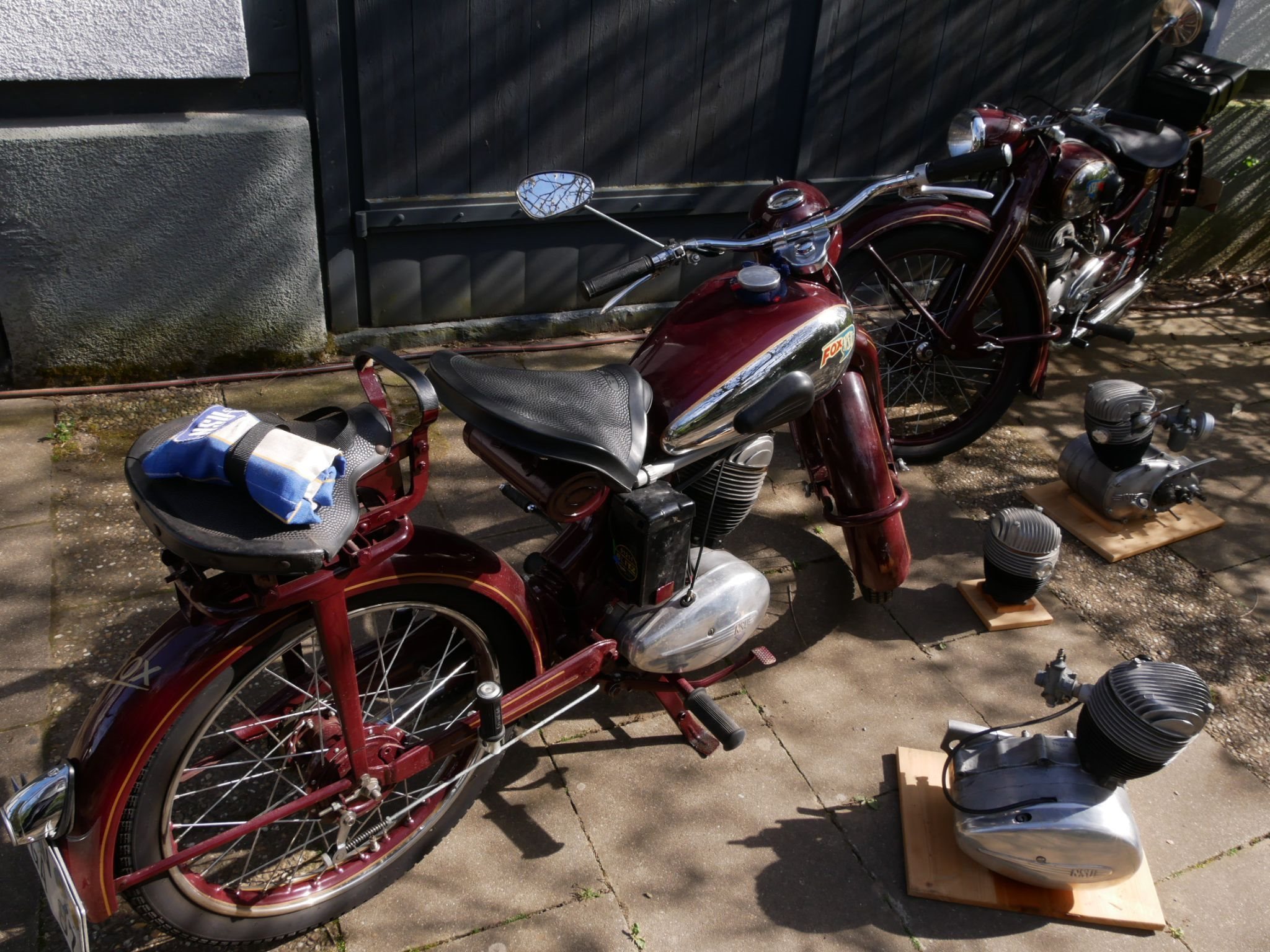 sowie jeweils passende generalüberholte Motoren, kompletter Zylinder/Kolben/Kopf vorhanden zusammen alles für 10000,-€