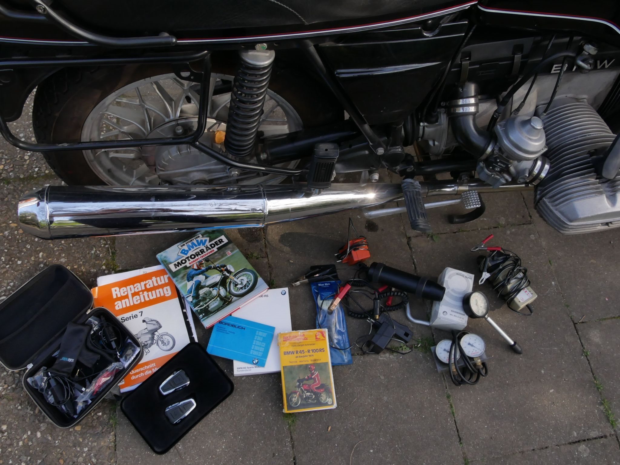 Orginalzustand, kein Vorbesitzer, TÜV 10/27 Saisonzulassung 10/03, Kickstarter, beheizbare Griffe, Oelköhler, 2 Fanfaren, Steckdose, verstärkte Federn hinten, Tourenlenker, schwarze Standrohre vorne (orginal silberne vorhanden), Sturzbügel, Koffer mit Innentaschen, Orginalbetriebsanleitung, Harrotankrucksack, Bremsscheibenschloß, Navigationsgerät TomTom Rider, Gegensprechanlange Cardo in 2 Helme eingebaut, 1 unbenutzt, andere nur auf Funktion getestet, diverse Gepäckrollen, BMW-Batteriefrischhaltegerät über Steckdose, Batterieladegerät und etliche Werkzeuge für Zweizylinder, Reparaturanleitungen und sonstige BMW-Bücher,