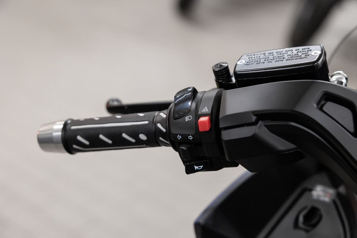 - Komfort: Verstellbare Bremshebel, Hauptständer und ein großzügiges Platzangebot als GT-Scooter.