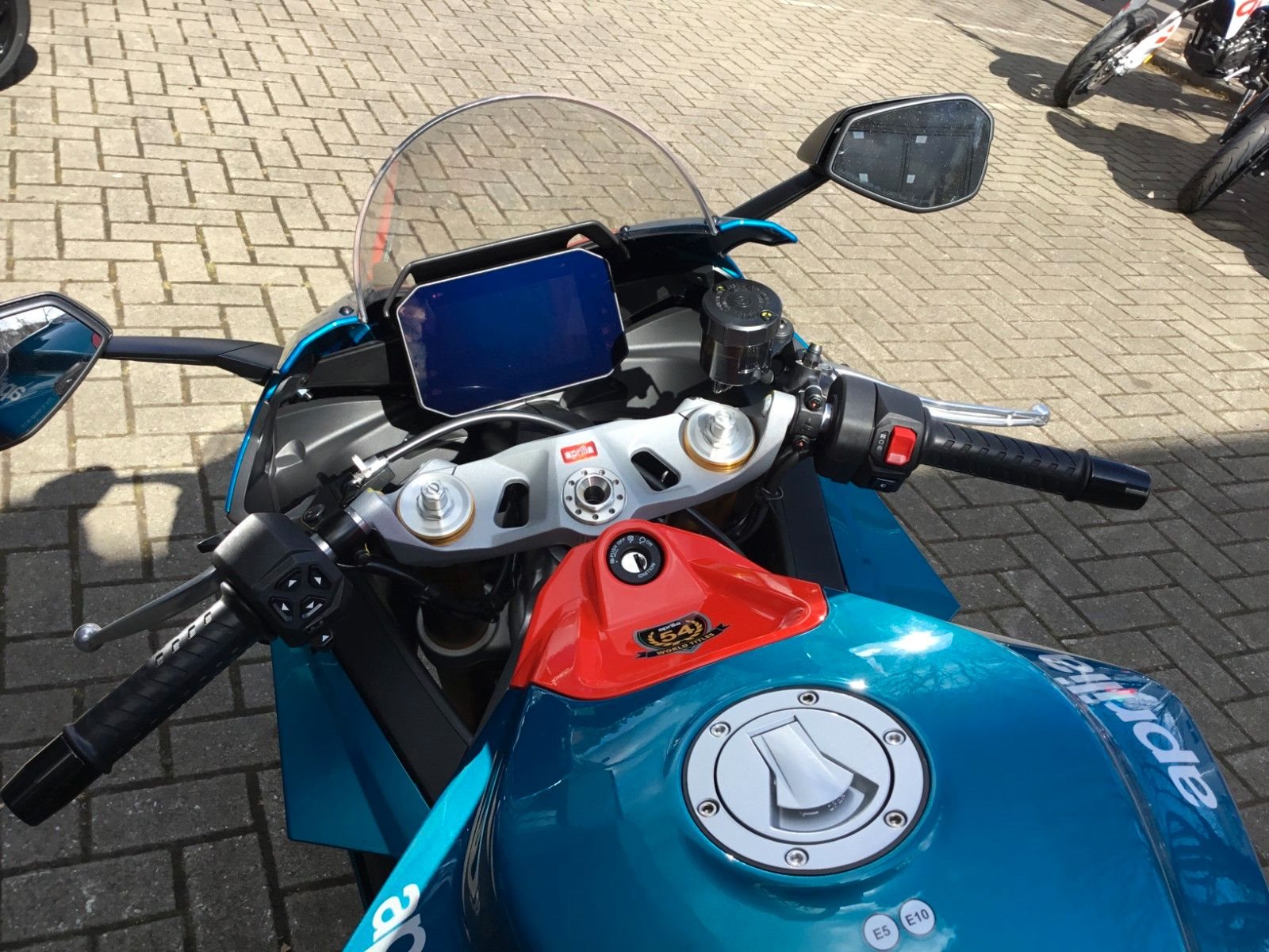 - Vollständiges APRC-Paket. Es ist das Fahrverhalten, das die Aprilia RS 660 wirklich auszeichnet. Der Zweizylindermotor mit vier Ventilen pro Zylinder, Euro 5+ homologiert, bietet 105 PS Maximalleistung und eine satte Leistungsentfaltung. Der Motor, der auch als tragendes Element dient, arbeitet in perfekter Synergie mit dem Aluminiumrahmen und bildet eine kompakte, leichte und steife Struktur. Die 660 steht für totale Kontrolle und Stabilität in jeder Kurve, auch wenn das Adrenalin auf dem Höhepunkt ist.