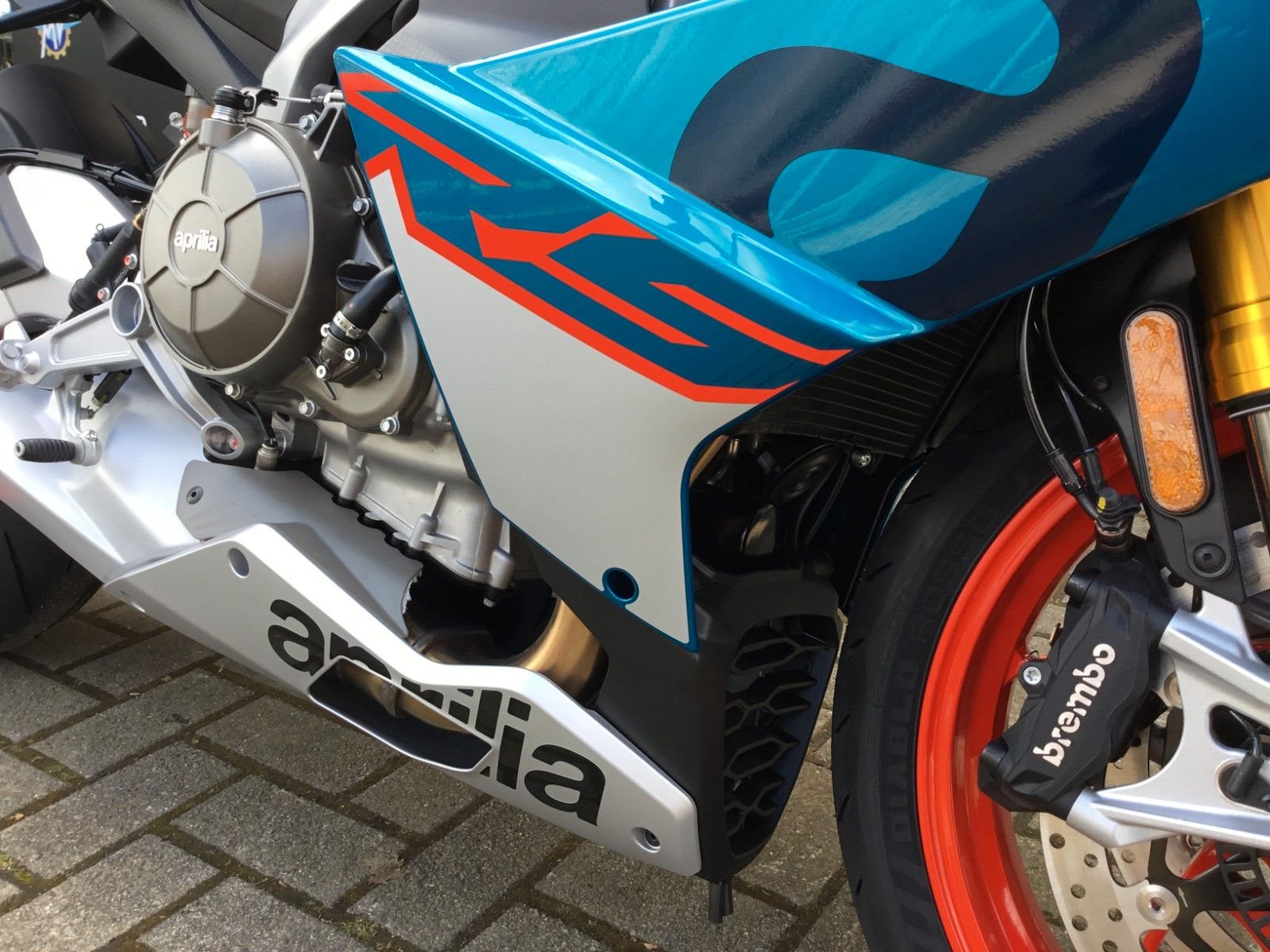 * Von der MotoGP inspirierte Aerodynamik.Die RS 660 bringt Racing-Aerodynamik auf ein neues Niveau. Die weiterentwickelte Verkleidung mit integrierten Winglets und dem großen Flügel unter der Verkleidung, kombiniert mit zwei kleineren aerodynamischen Flügeln, sorgt für optimale Luftdurchdringung und außergewöhnliche Stabilität bei hohen Geschwindigkeiten. Die seitlichen Verkleidungen mit doppelter Verkleidung und integrierten aerodynamischen Elementen optimieren den Luftstrom und schützen den Fahrer vor Winddruck sowie heißen Strömungen, die von Motor und Kühler abgeleitet werden. Diese aerodynamischen Lösungen, die aus der MotoGP stammen, verbessern nicht nur die Leistung, sondern auch den Fahrkomfort und machen die RS 660 zur idealen Wahl sowohl für die Straße als auch für Fahrer, die ihre persönliche Bestzeit schlagen wollen....