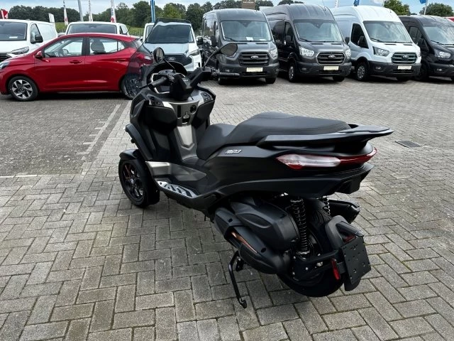 Ergonomie und Komfort sind ebenfalls erstklassig, dank des großzügigen und bequemen Sitzes, der ein Fach verbirgt, das groß genug ist, um bis zu zwei Integralhelme aufzunehmen. Der Piaggio MP3 530 Exclusive erweitert die Grenzen Ihrer Stadt und kann mit einem normalen PKW-Führerschein Klasse B gefahren werden.