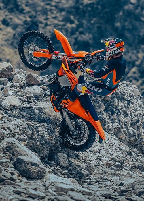 Die KTM 300 EXC behält ihren legendären Status als unangefochtener König des Enduro-Sports. Sie trägt nicht nur den bekanntesten Titel an der Spitze des Hard-Enduro, sondern bleibt auch unerreicht in Sachen Zweitakt-Innovation, Power und purem Fahrspaß. Mit einem unverwüstlichen, kraftstoffinjizierten Zweitaktmotor, der massives Drehmoment im unteren Bereich und brachiale Spitzenleistung liefert, ist sie der ideale Begleiter für anspruchsvolles Gelände.