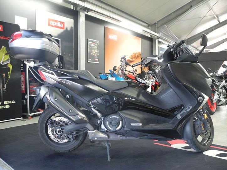 Gebrauchtfahrzeug Yamaha T-Max 530 DX in schwarz-matt vom Händler mit 1 Jahr Händlergewährleistung * GUTER ZUSTAND aus 2. Hand, scheckheftgepflegt, großes Givi Topcase V56 inklusive, kleine Kratzer linke Seite durch Umfaller im Stand, technisch einwandfrei, TÜV kostenlos neu bei Kauf