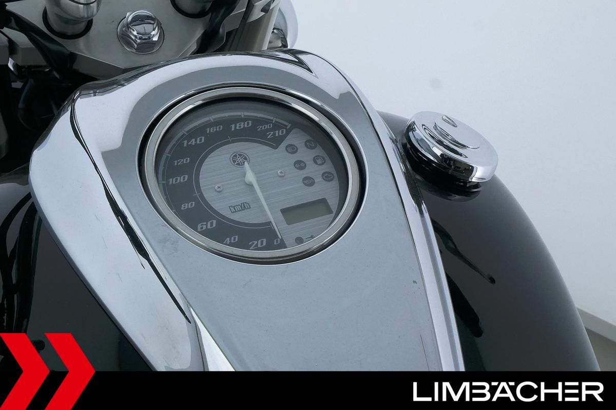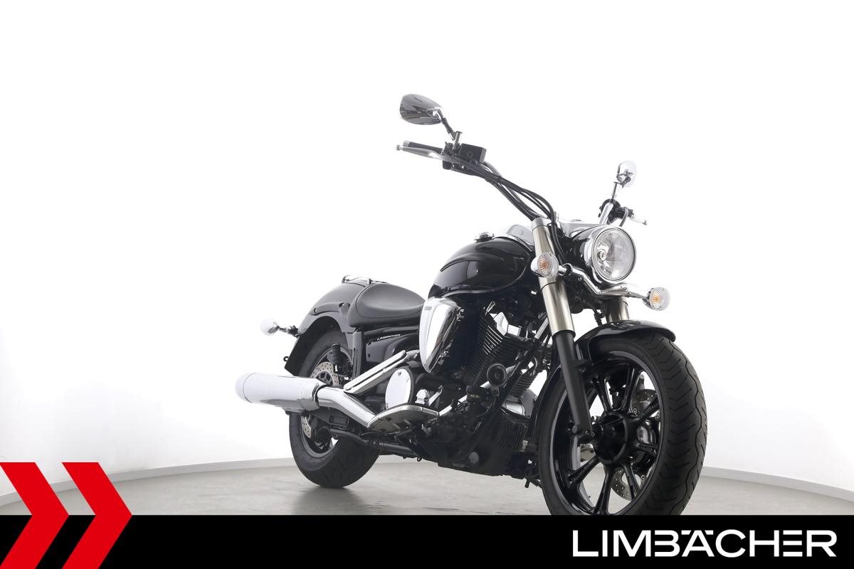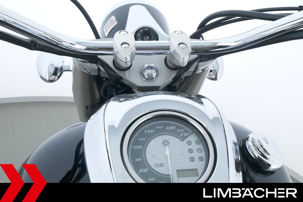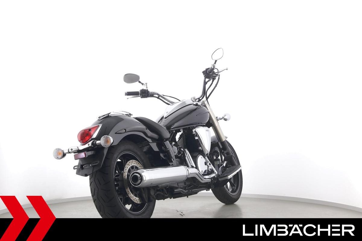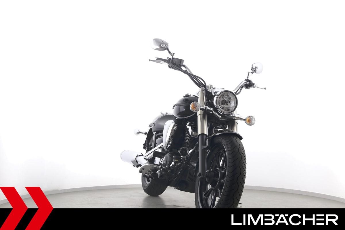 Eine scheckheftgepflegte Yamaha XVS 950 A Midnight Star in sehr gepflegtem Zustand u.a. mit Originalausstattung sowie Gepäckträger auf Heckfender.
