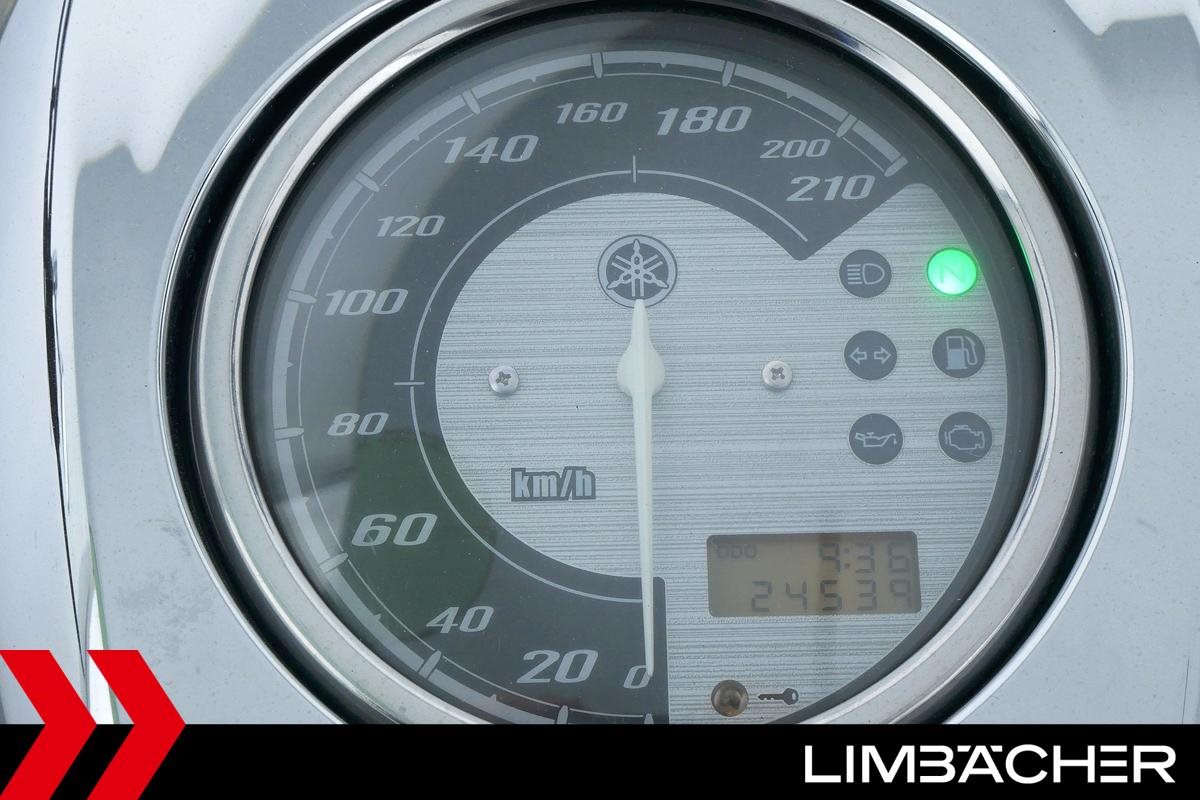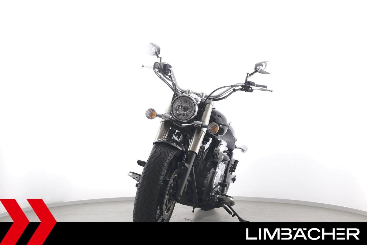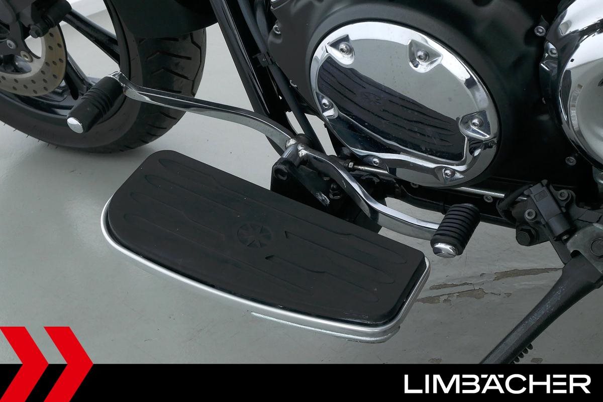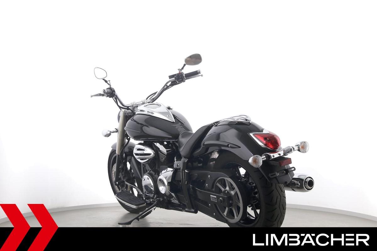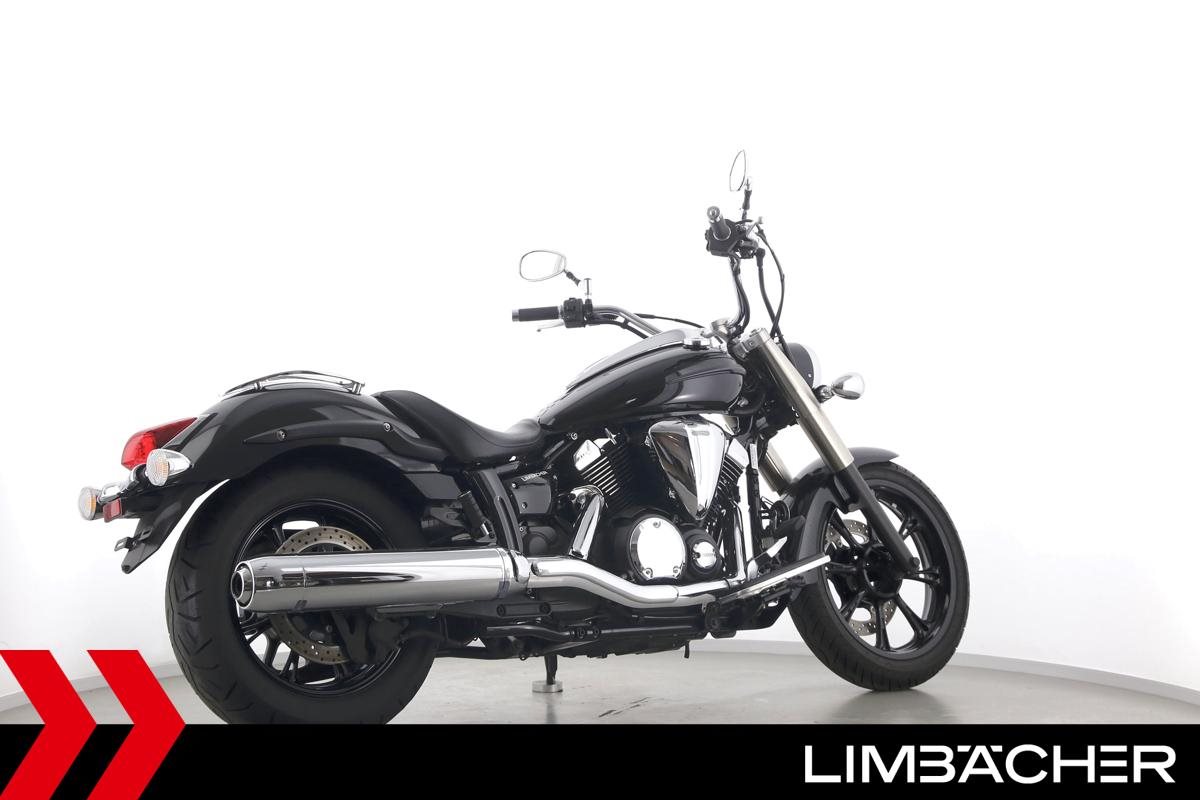 Eine scheckheftgepflegte Yamaha XVS 950 A Midnight Star in sehr gepflegtem Zustand u.a. mit Originalausstattung sowie Gepäckträger auf Heckfender.