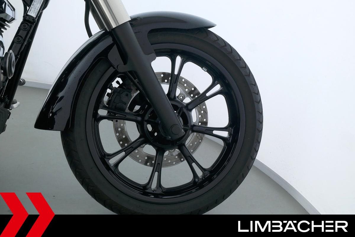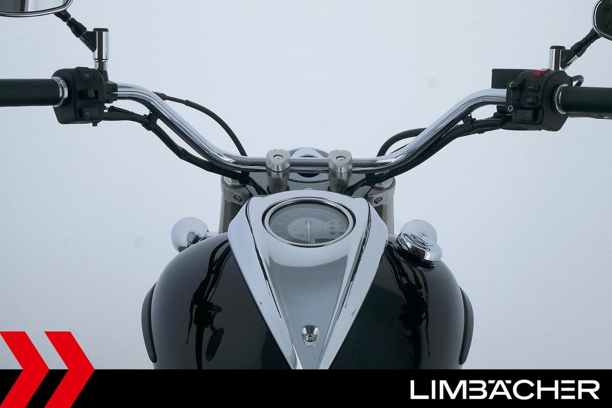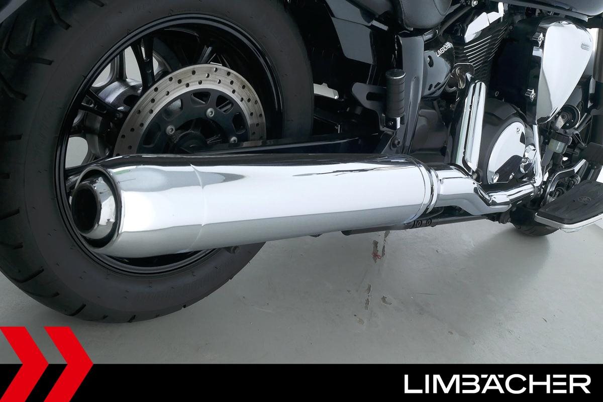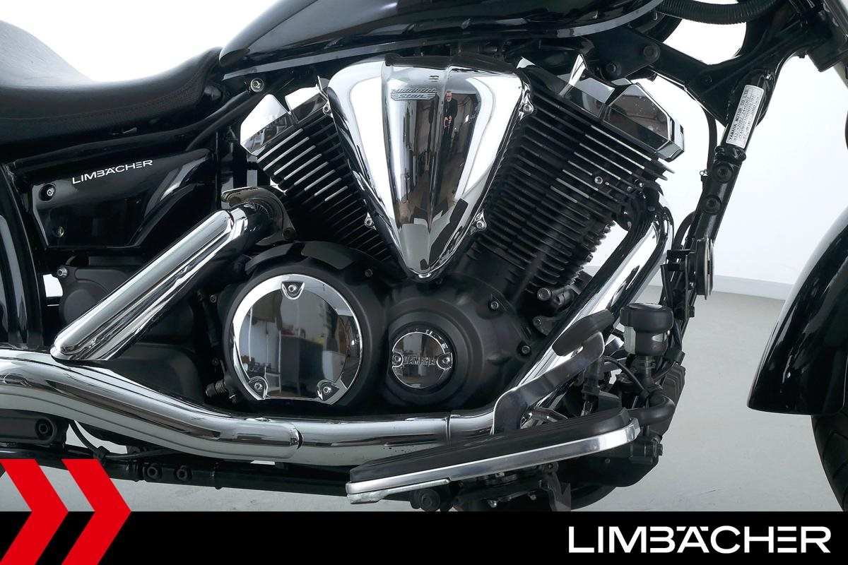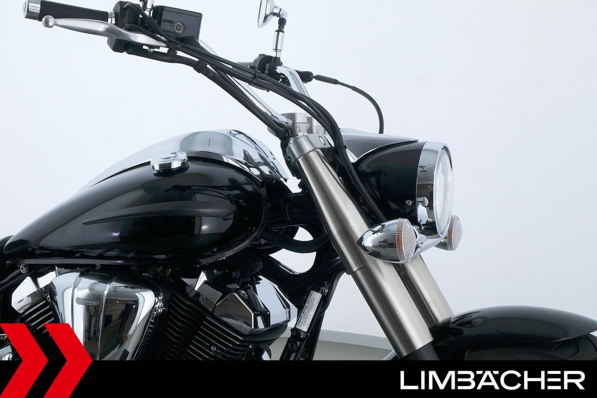 Eine scheckheftgepflegte Yamaha XVS 950 A Midnight Star in sehr gepflegtem Zustand u.a. mit Originalausstattung sowie Gepäckträger auf Heckfender.