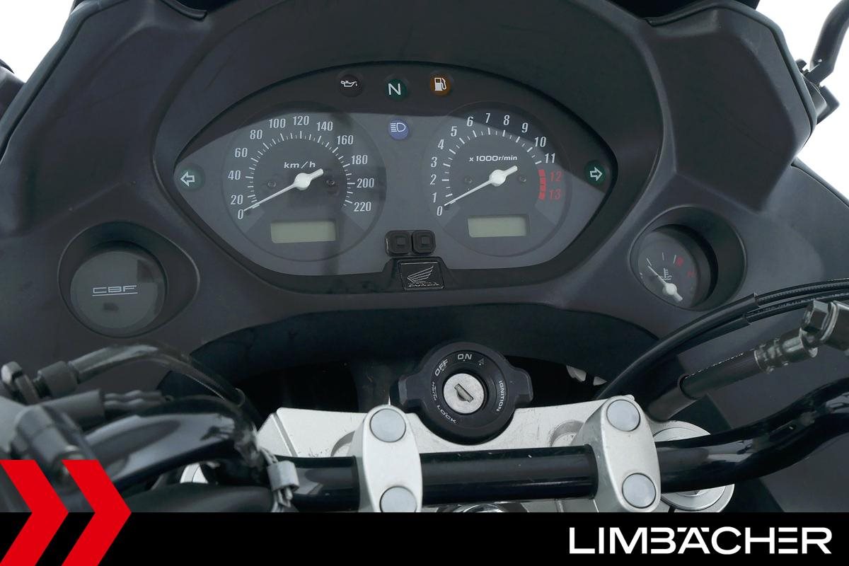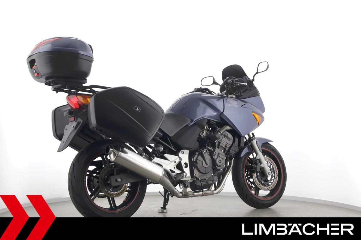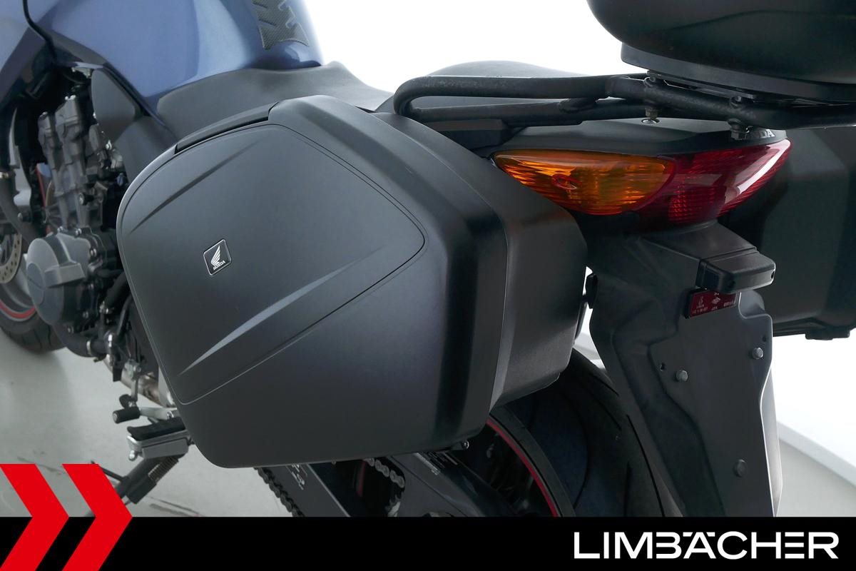 Eine Honda CBF 600 S in gepflegtem Zustand u.a. mit Honda-Koffersystem sowie Honda-Topcase.