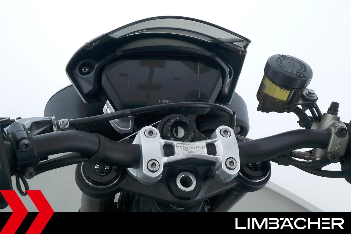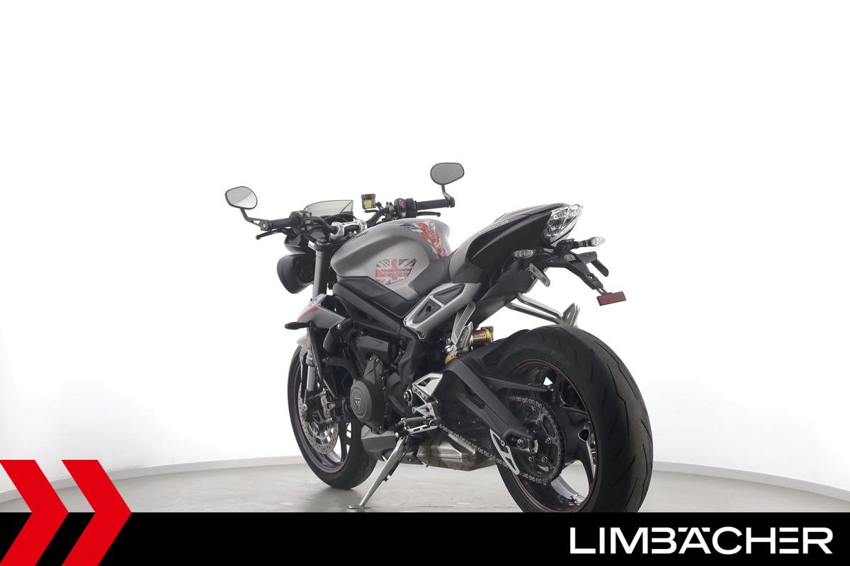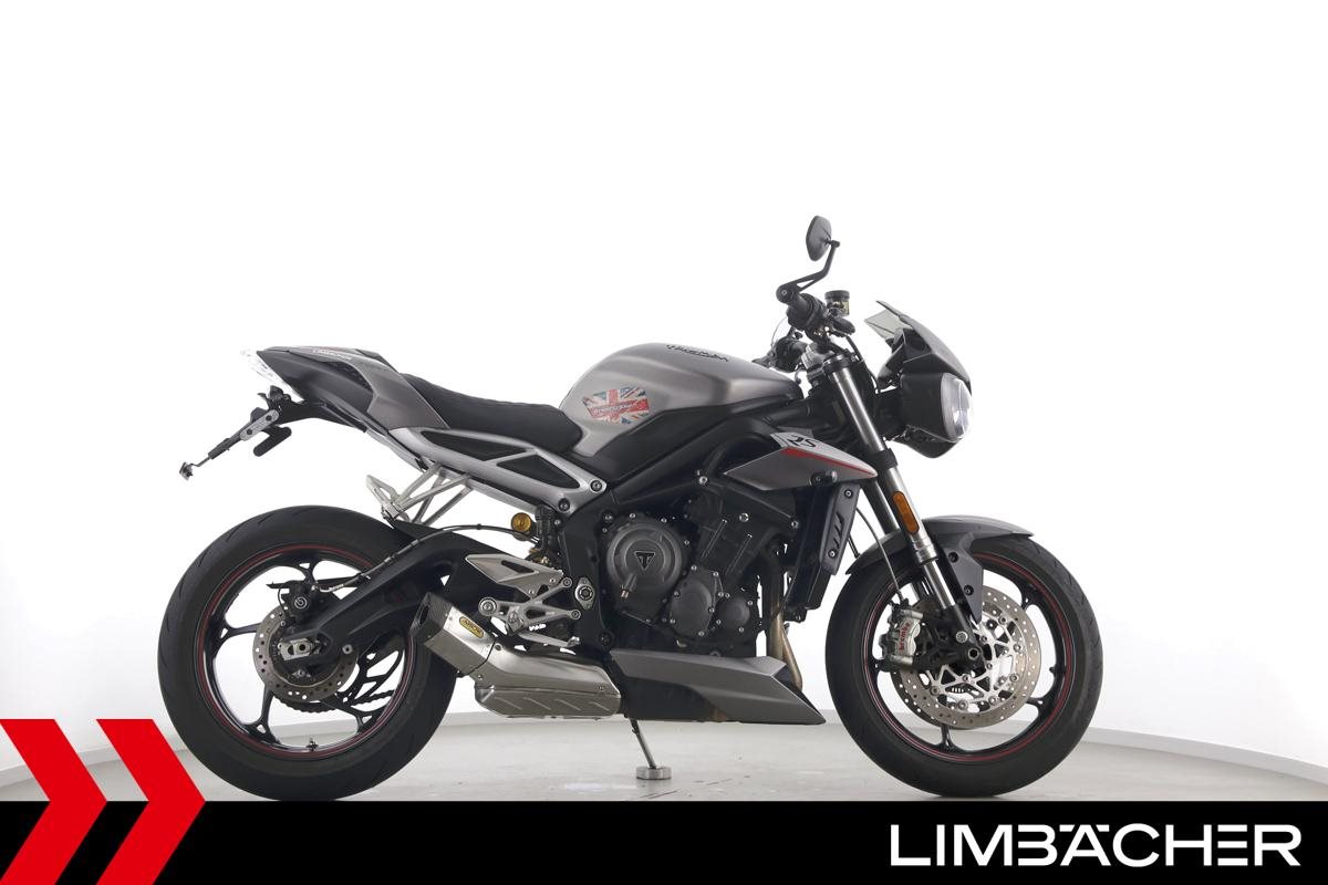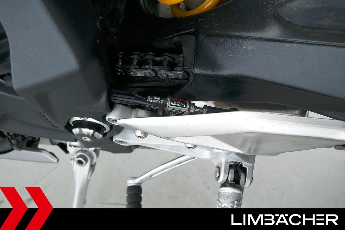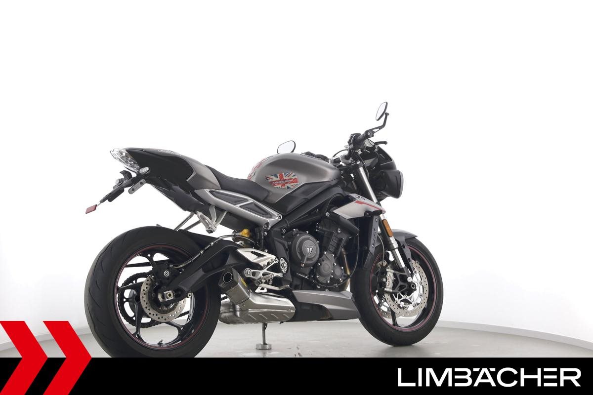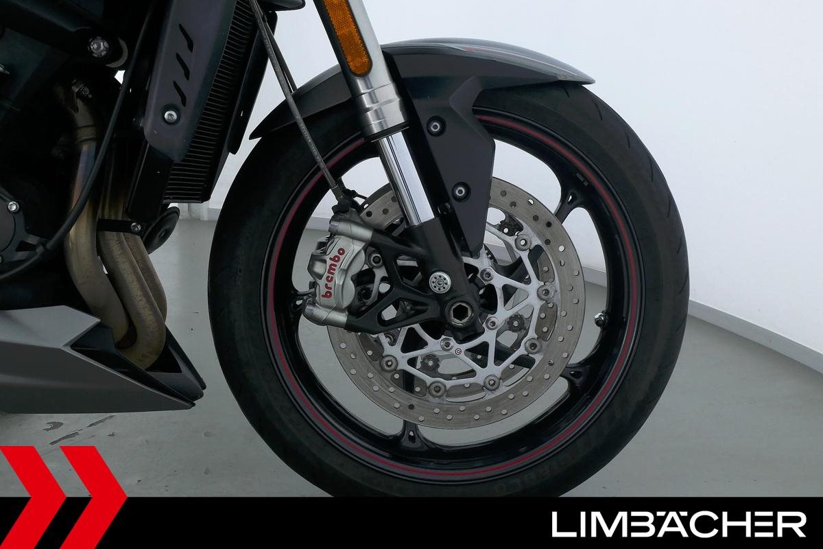 Eine scheckheftgepflegte Triumph Street Triple 765 RS in gepflegtem Zustand u.a. mit Arrow-Endschalldämpfer und Öhlins-Stoßdämpfer.