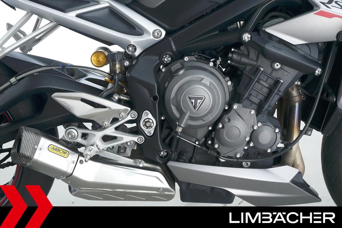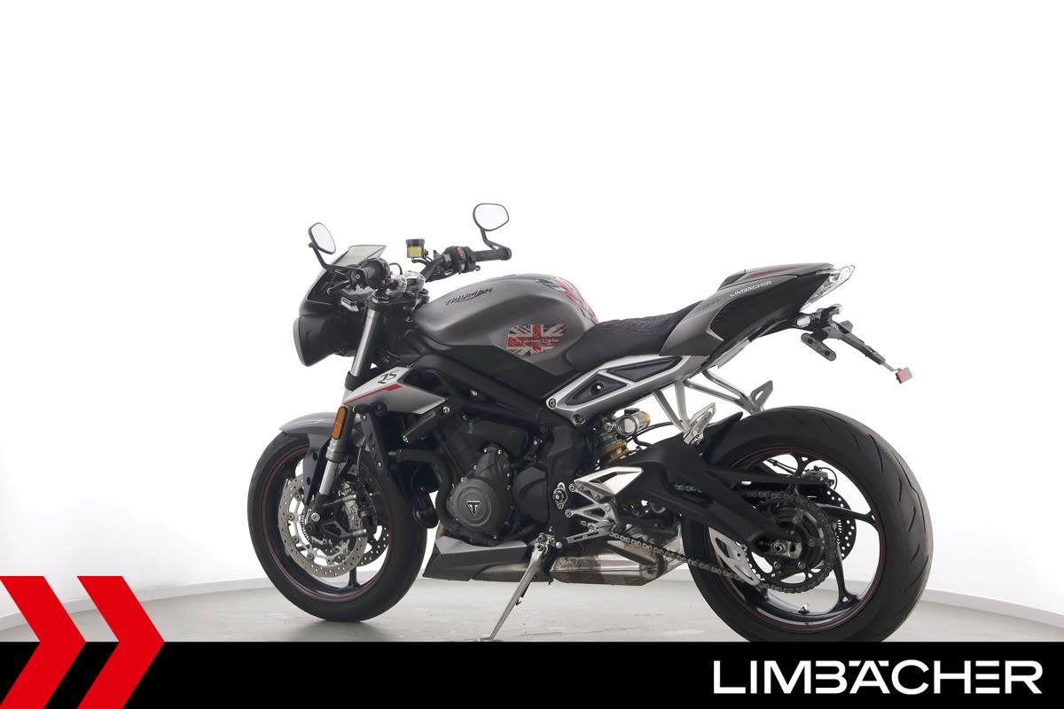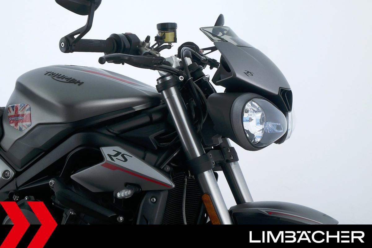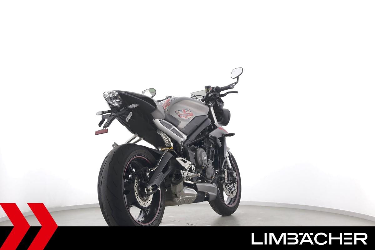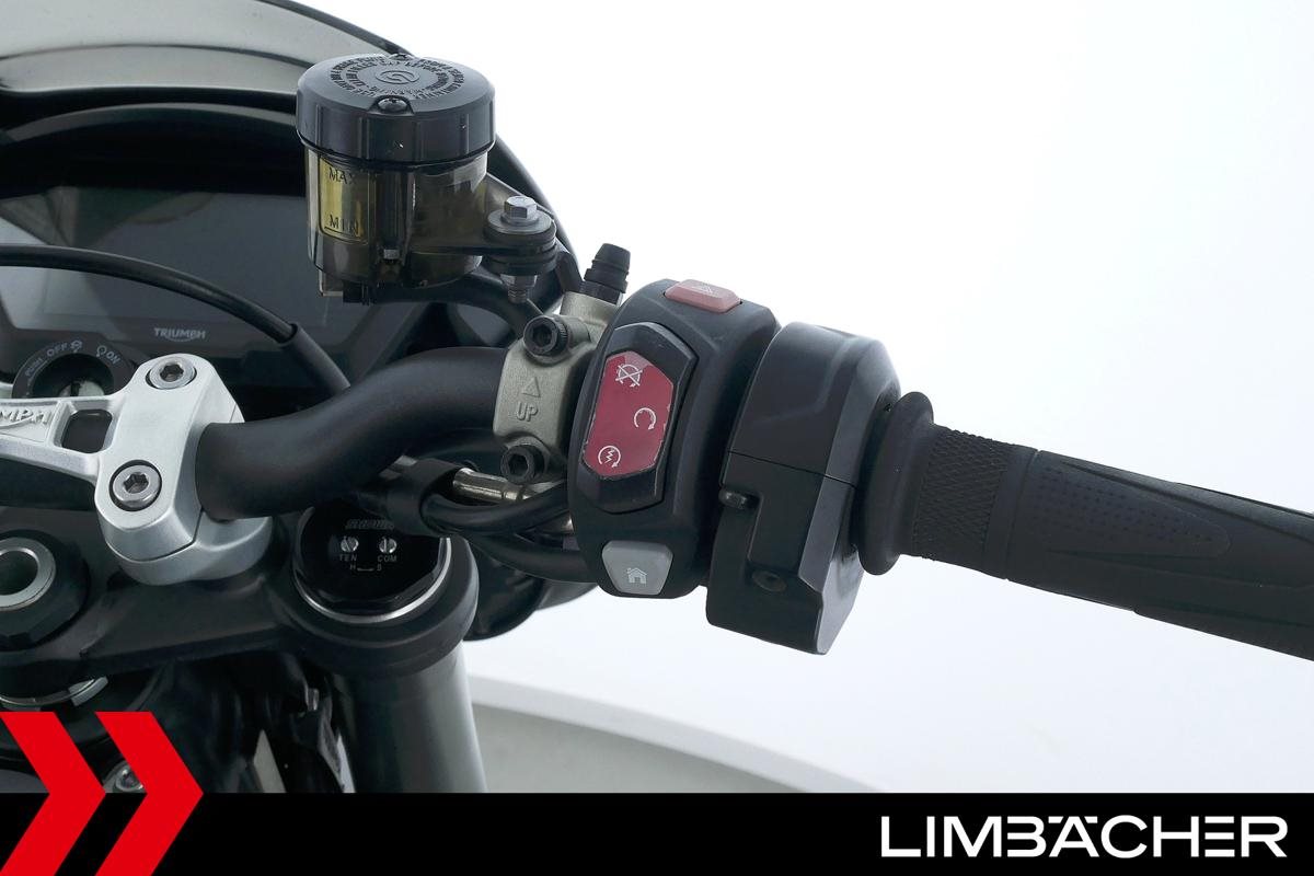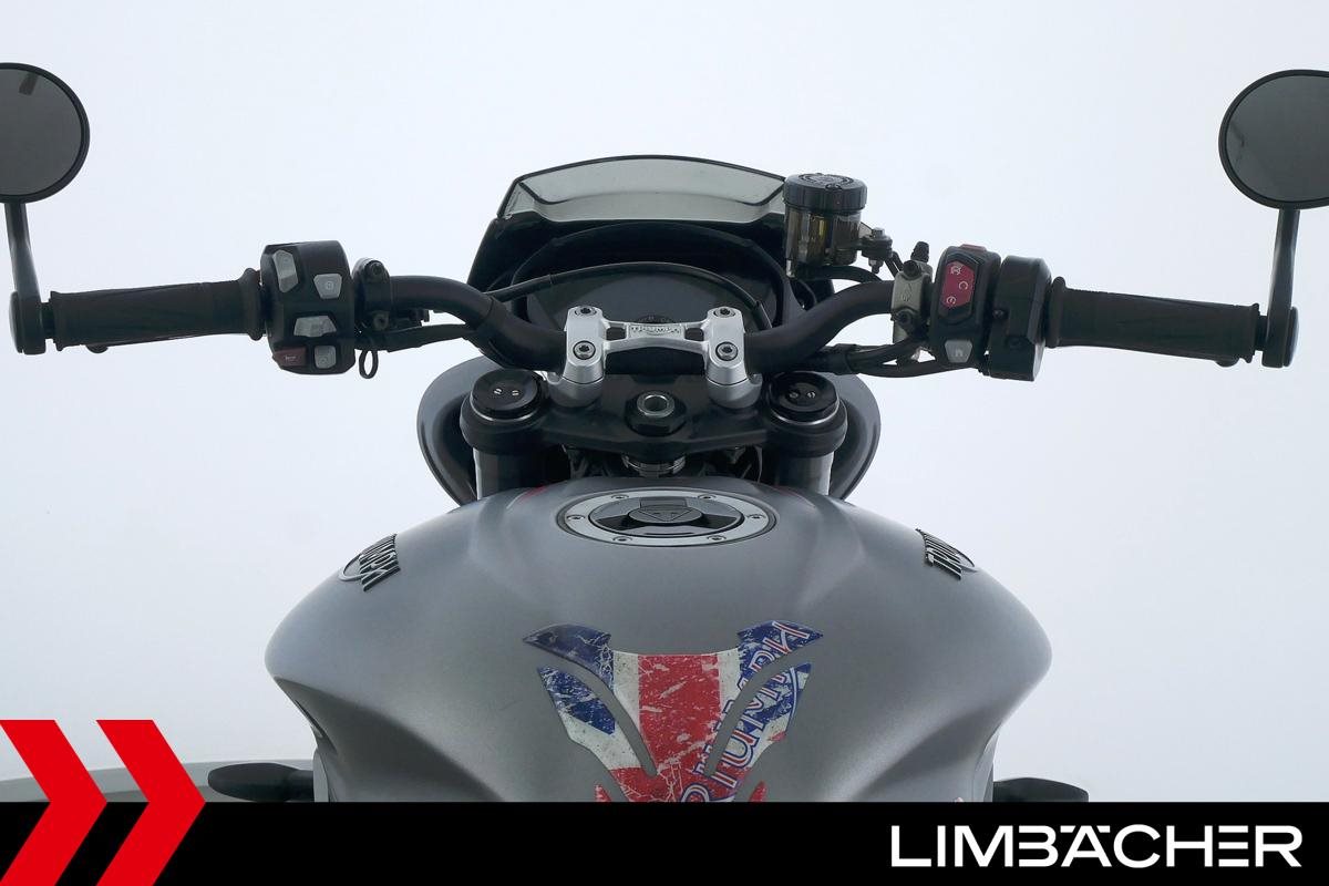 Eine scheckheftgepflegte Triumph Street Triple 765 RS in gepflegtem Zustand u.a. mit Arrow-Endschalldämpfer und Öhlins-Stoßdämpfer.