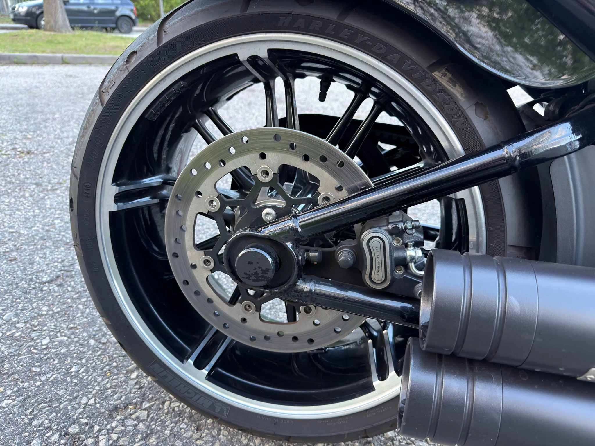 - Der breiteste Hinterreifen der serienmäßigen Harleys kommt gut zur Geltung