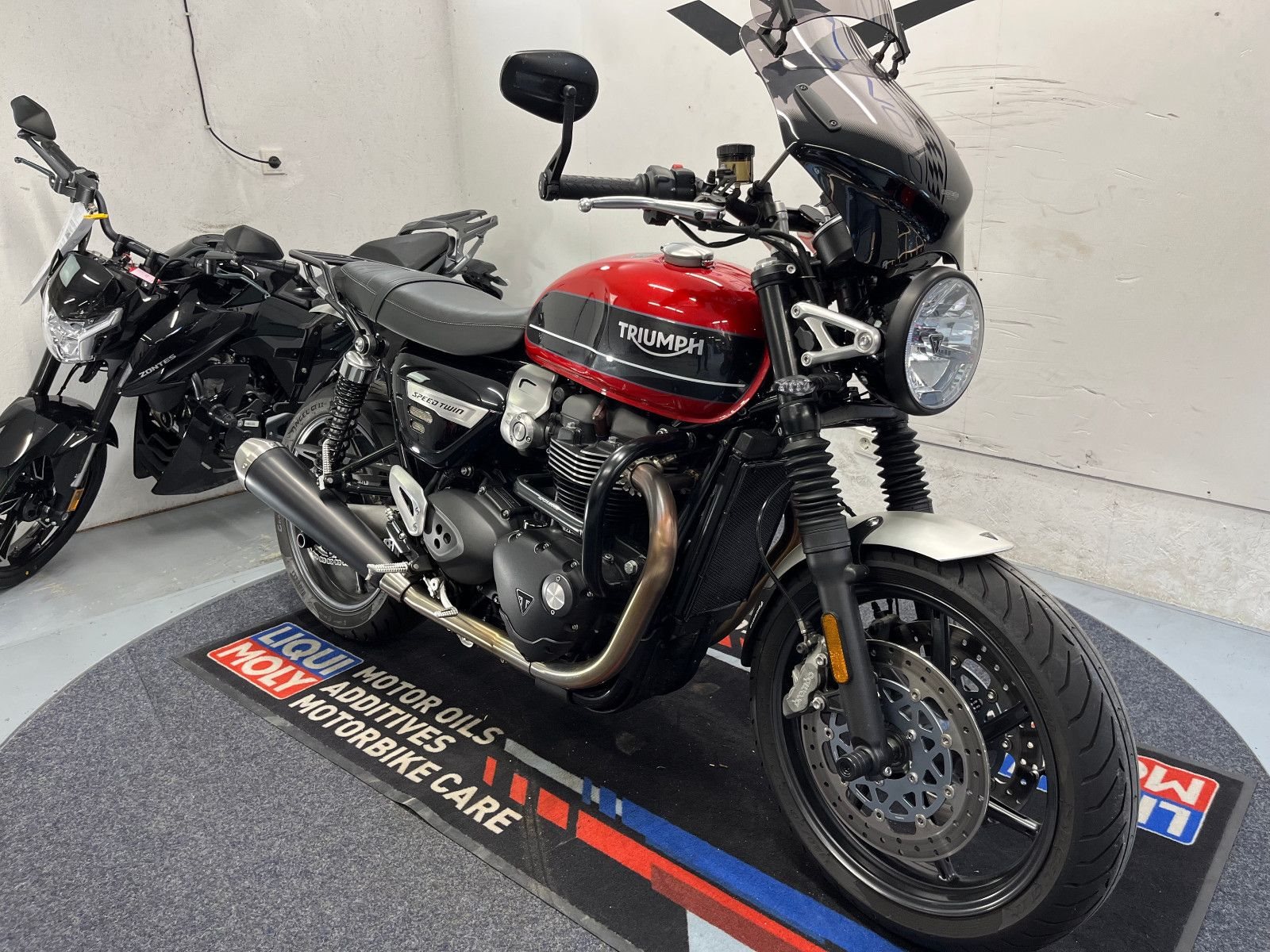 - Die Triumph Speed Twin 1200 ist in einem gepflegten Zustand.