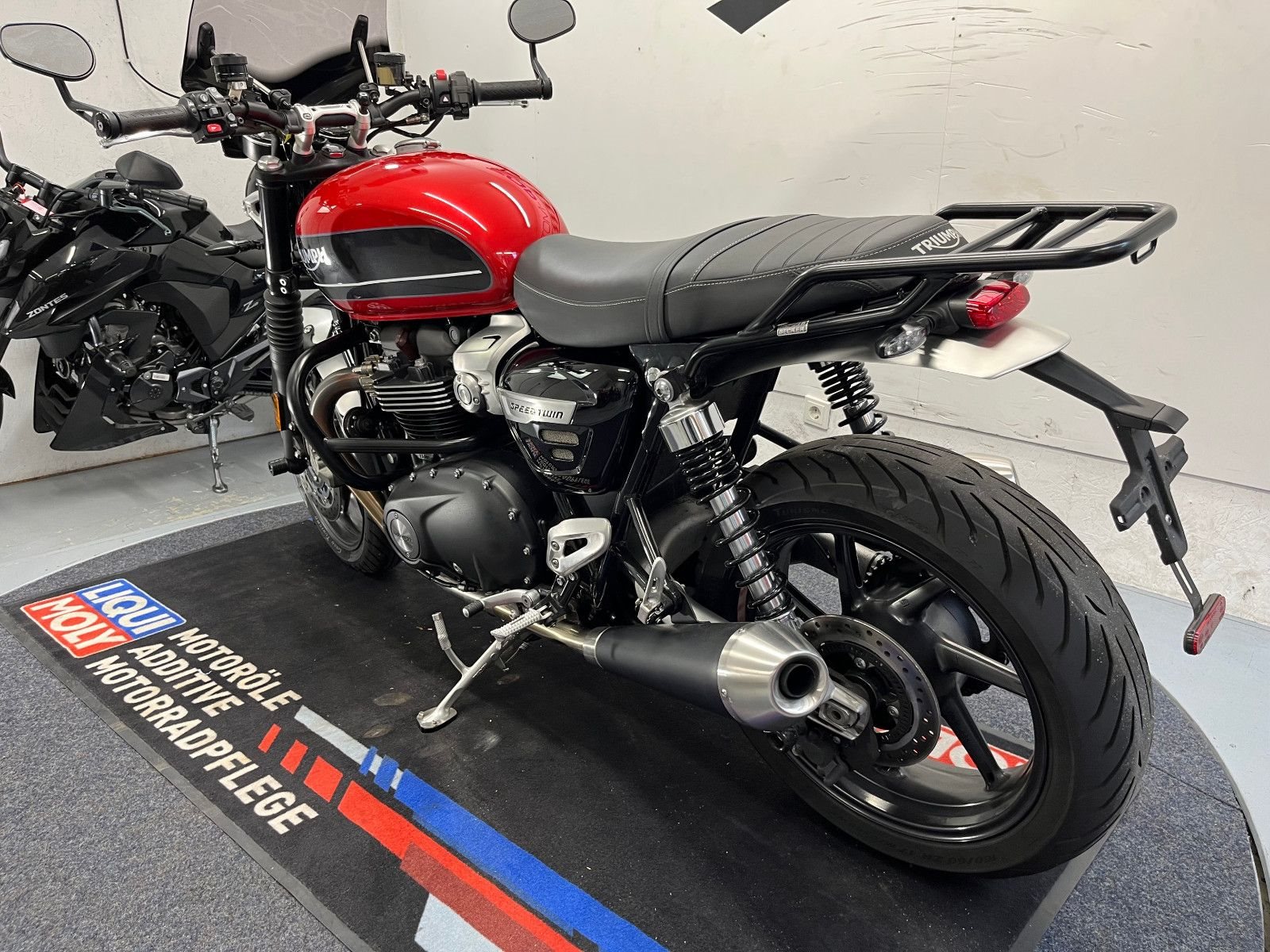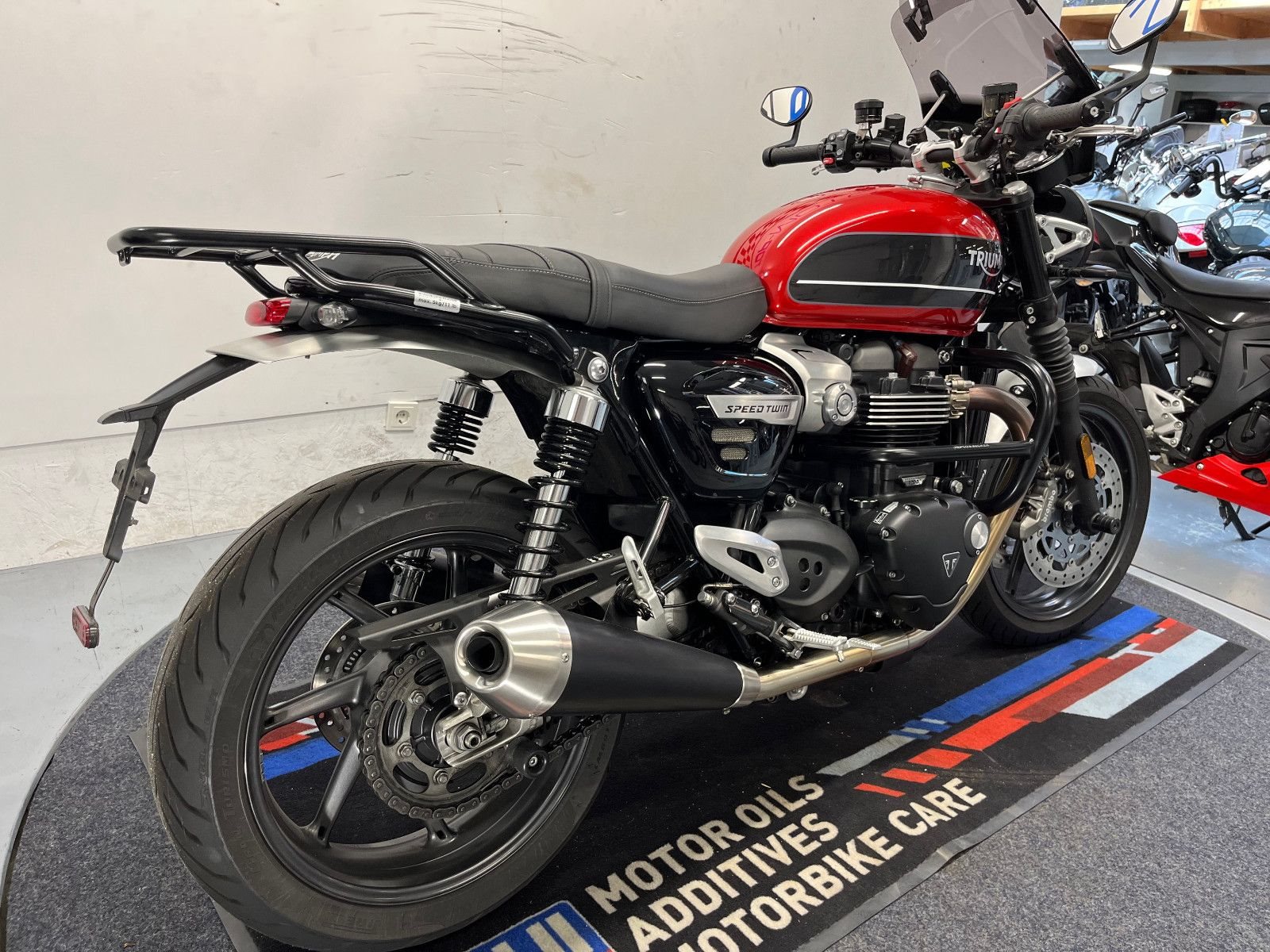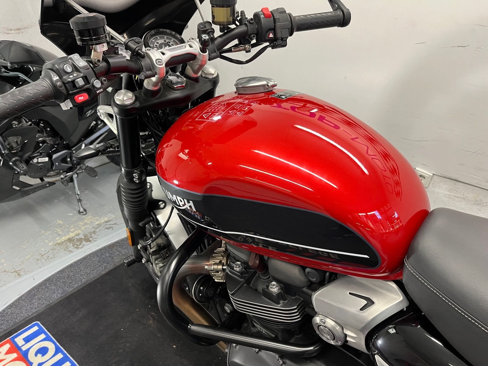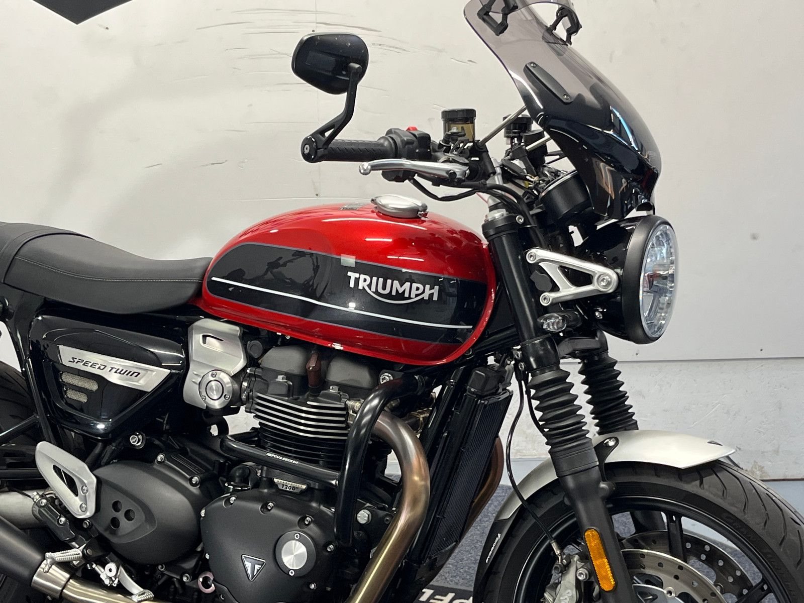 - Die Triumph Speed Twin 1200 ist in einem gepflegten Zustand.