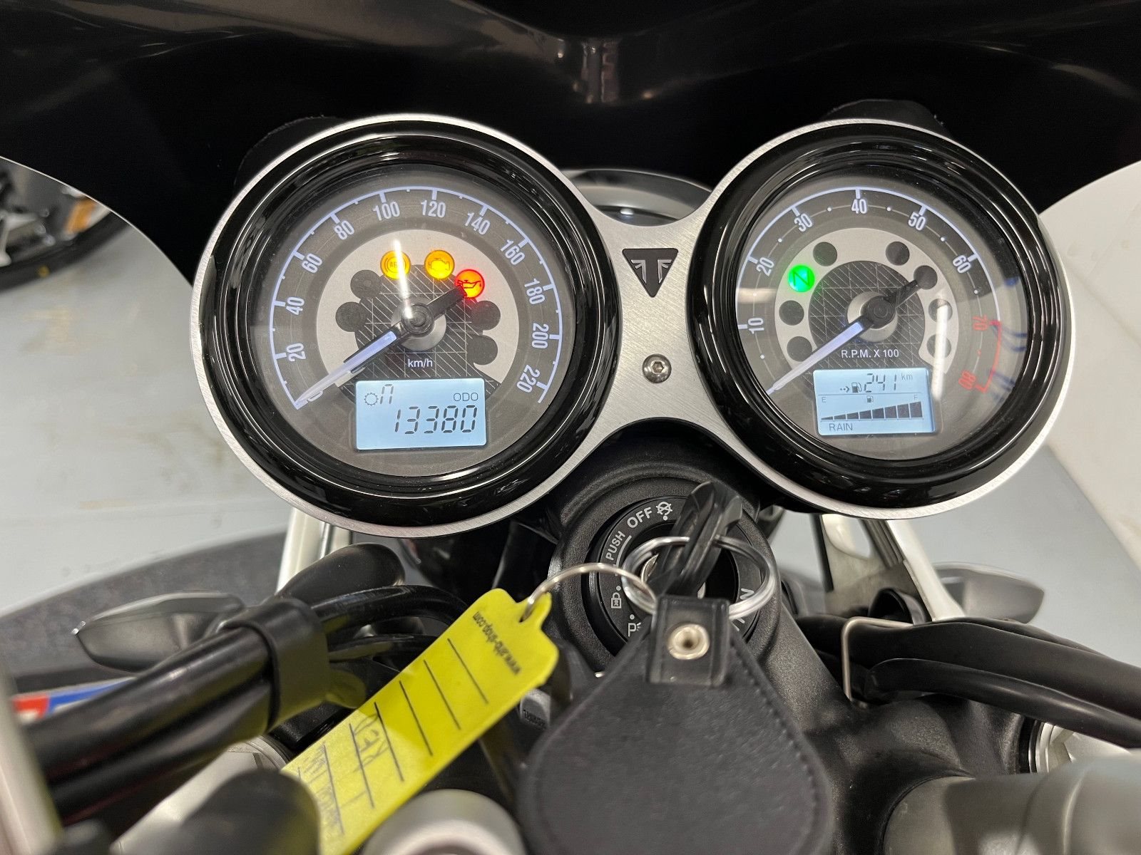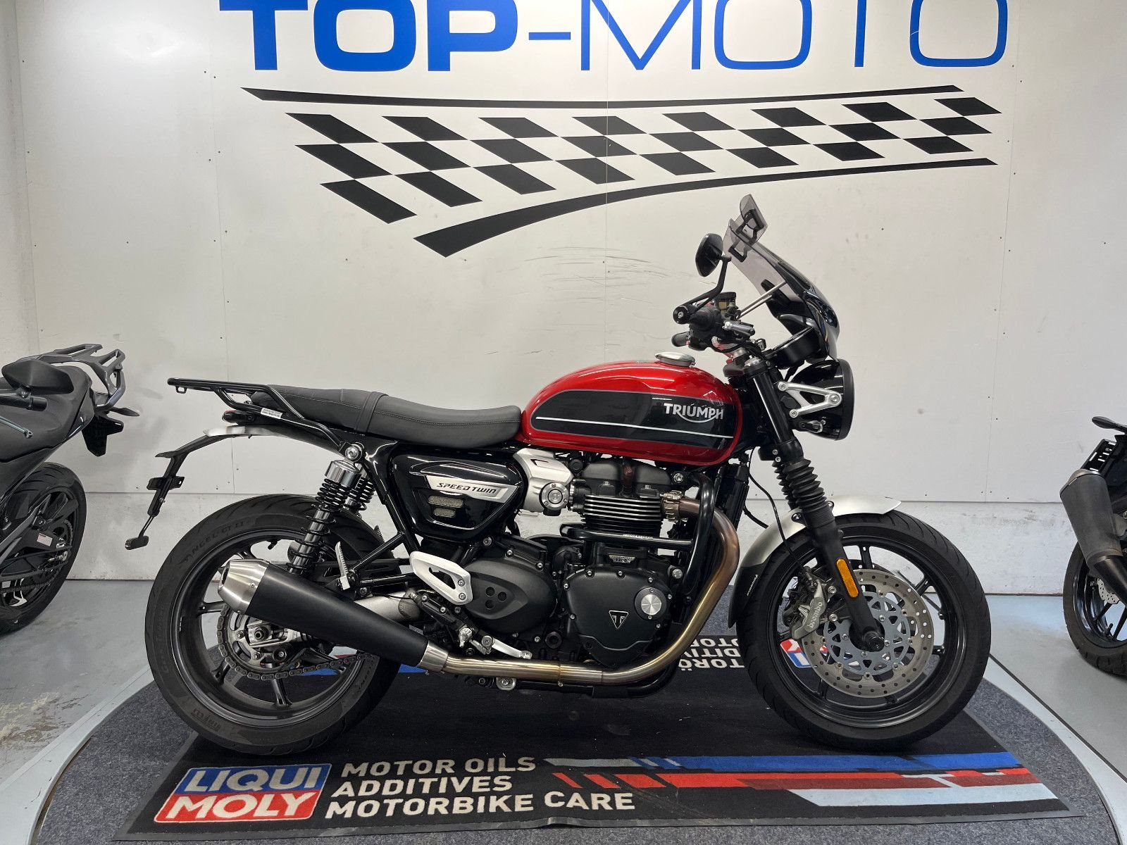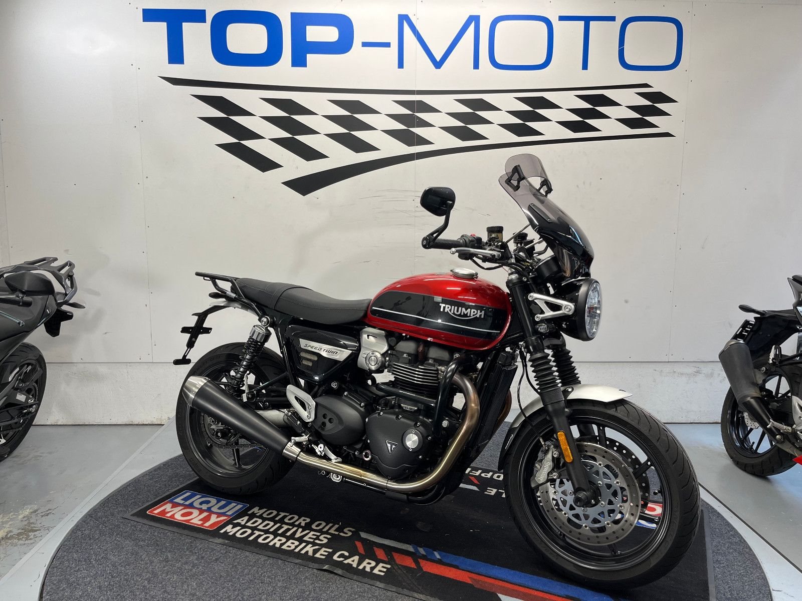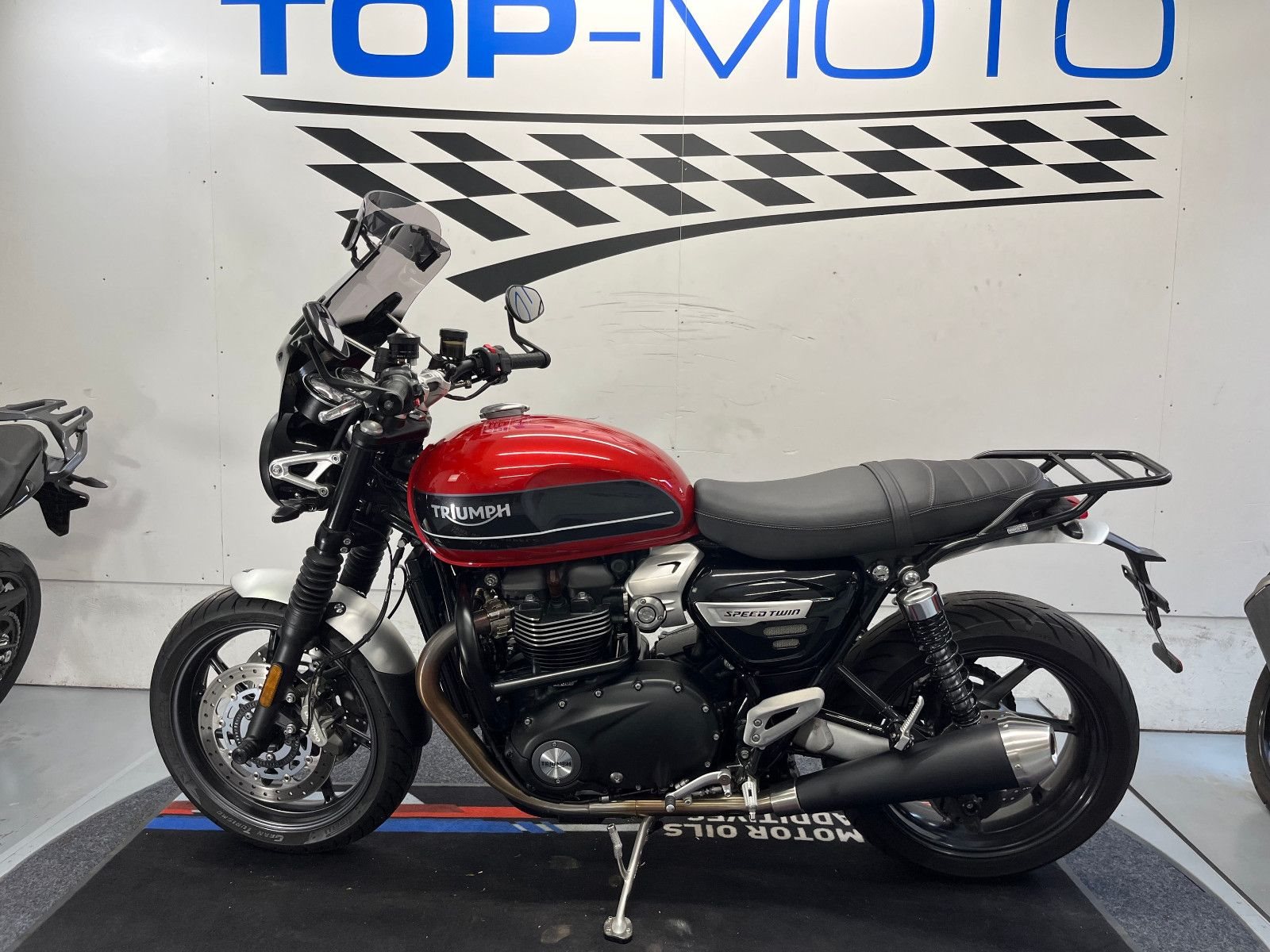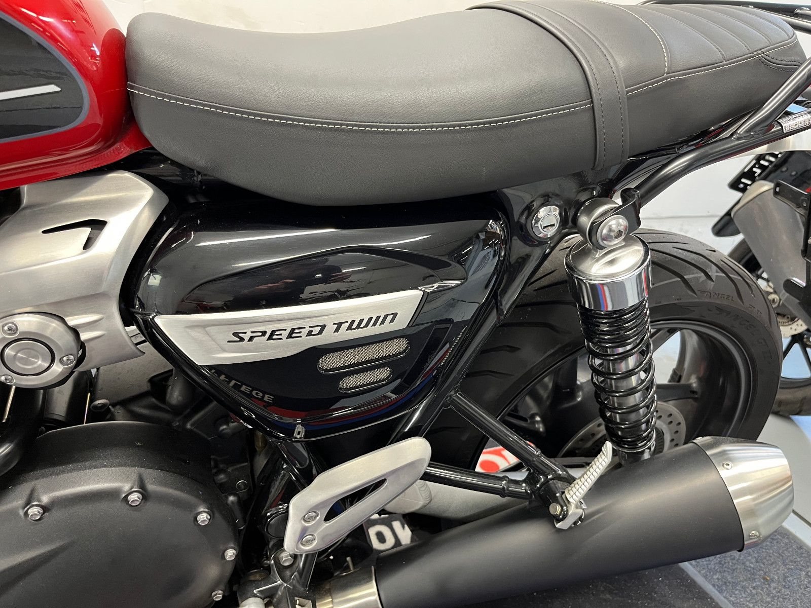 - Die Triumph Speed Twin 1200 ist in einem gepflegten Zustand.