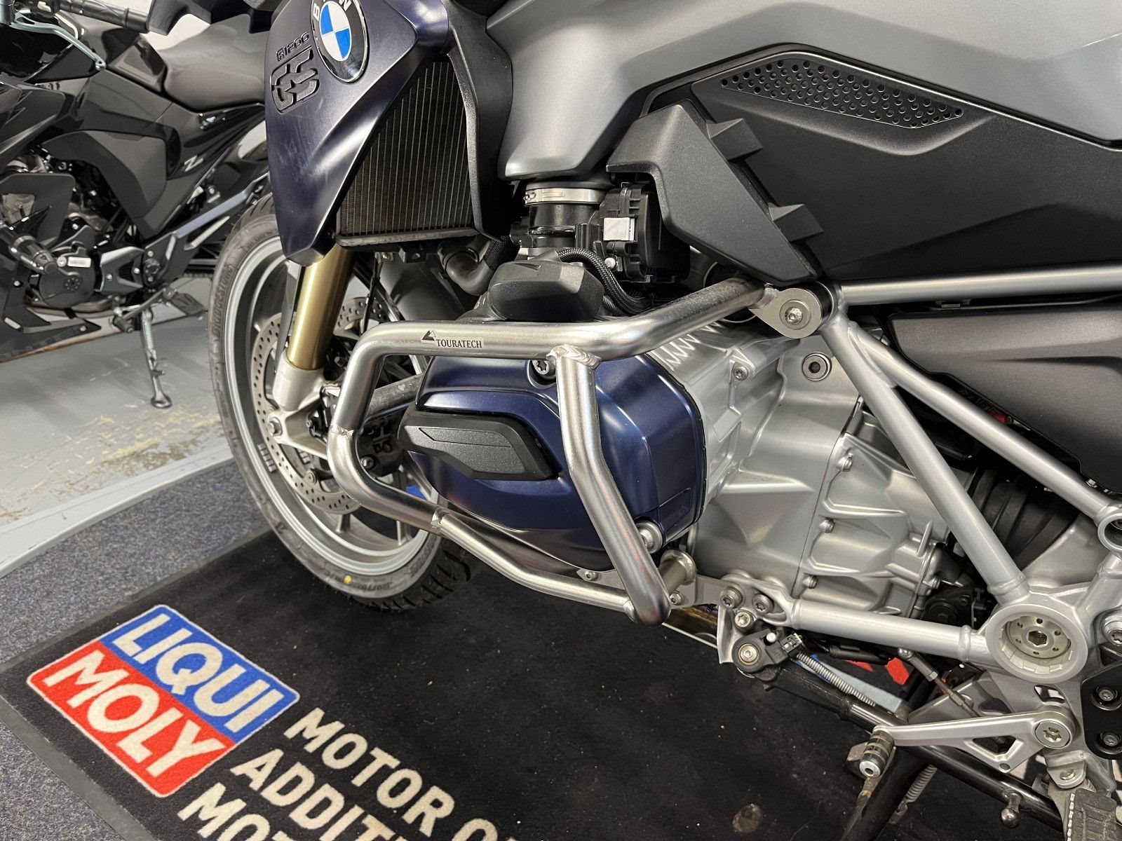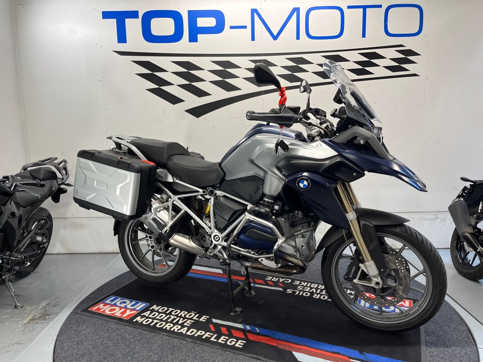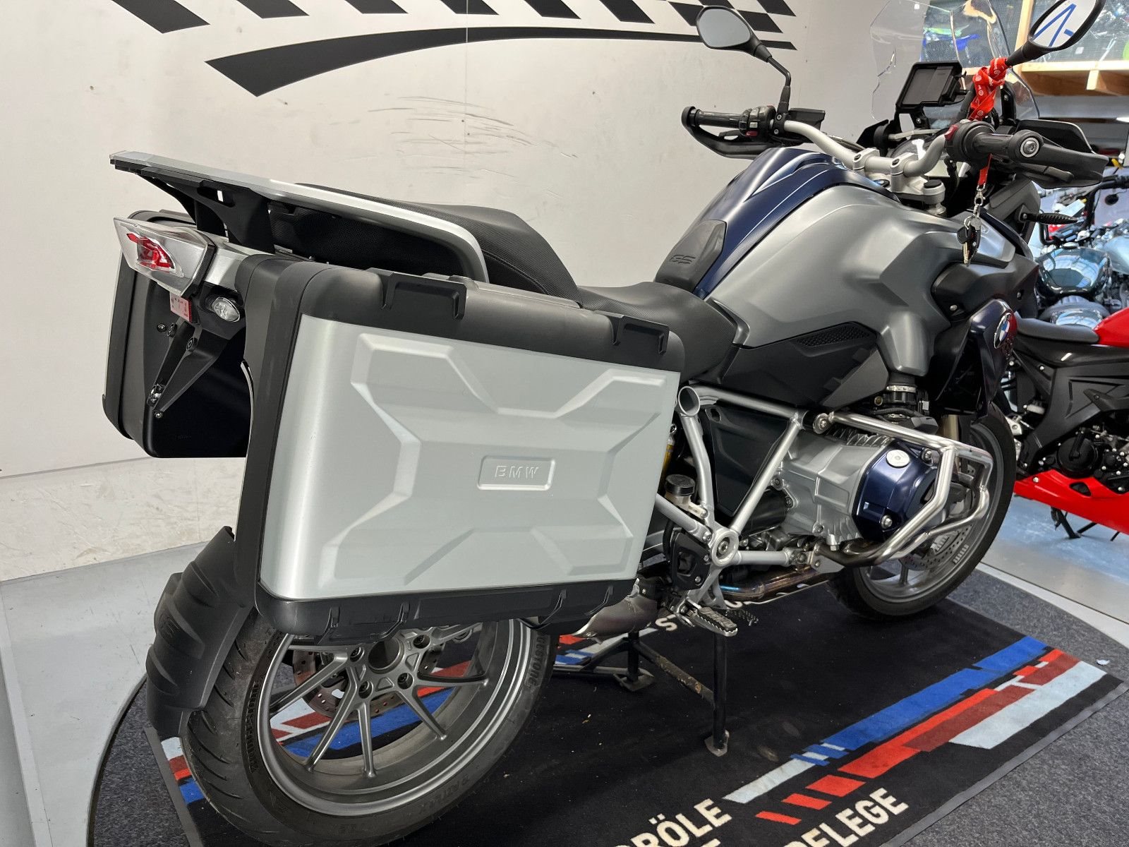 - Die BMW R-1200 GS ist in einem gepflegten Zustand.