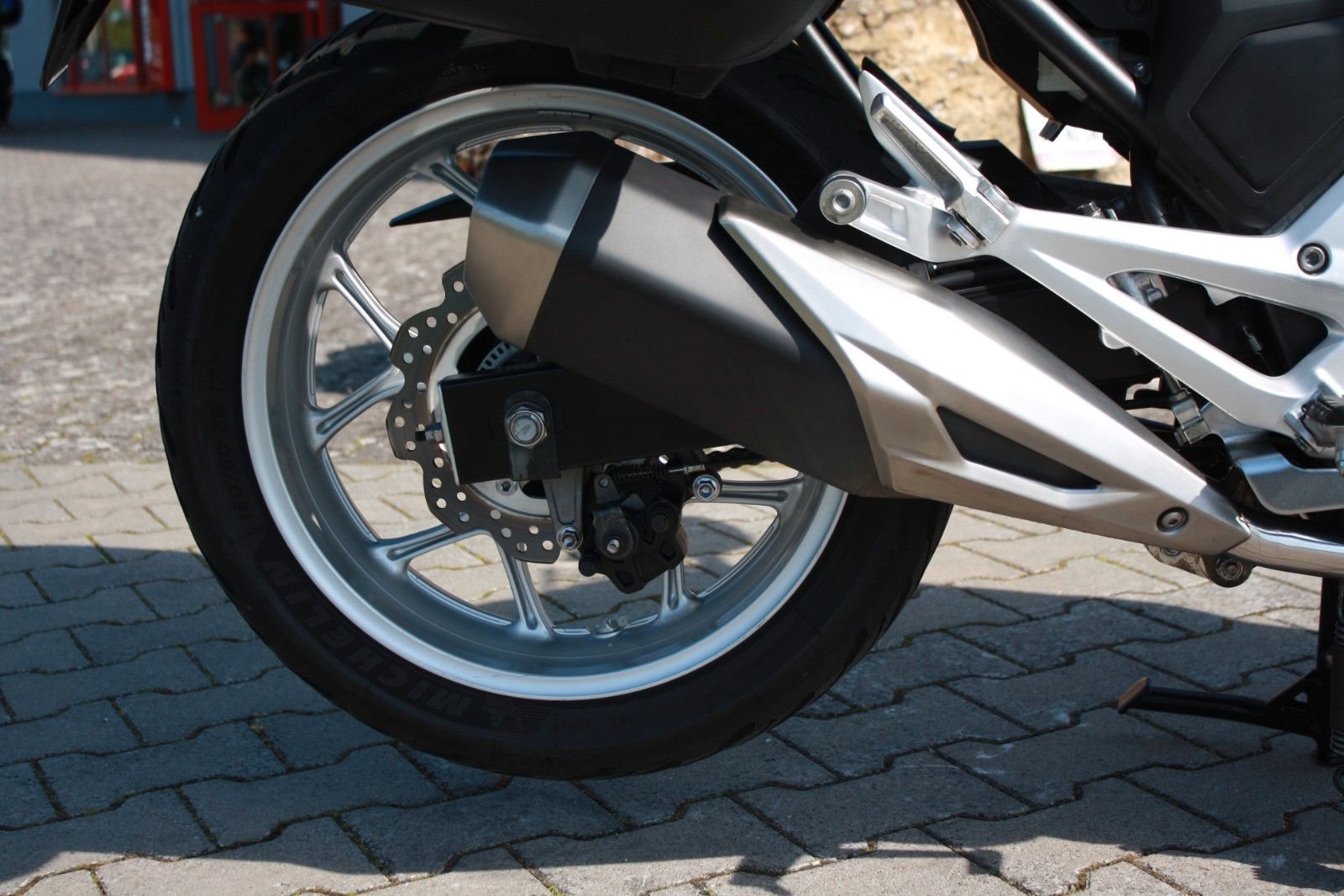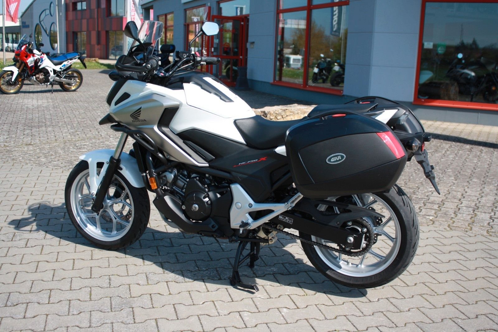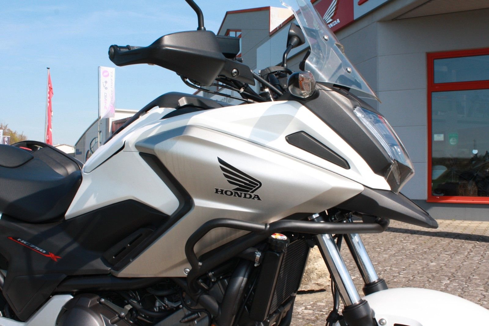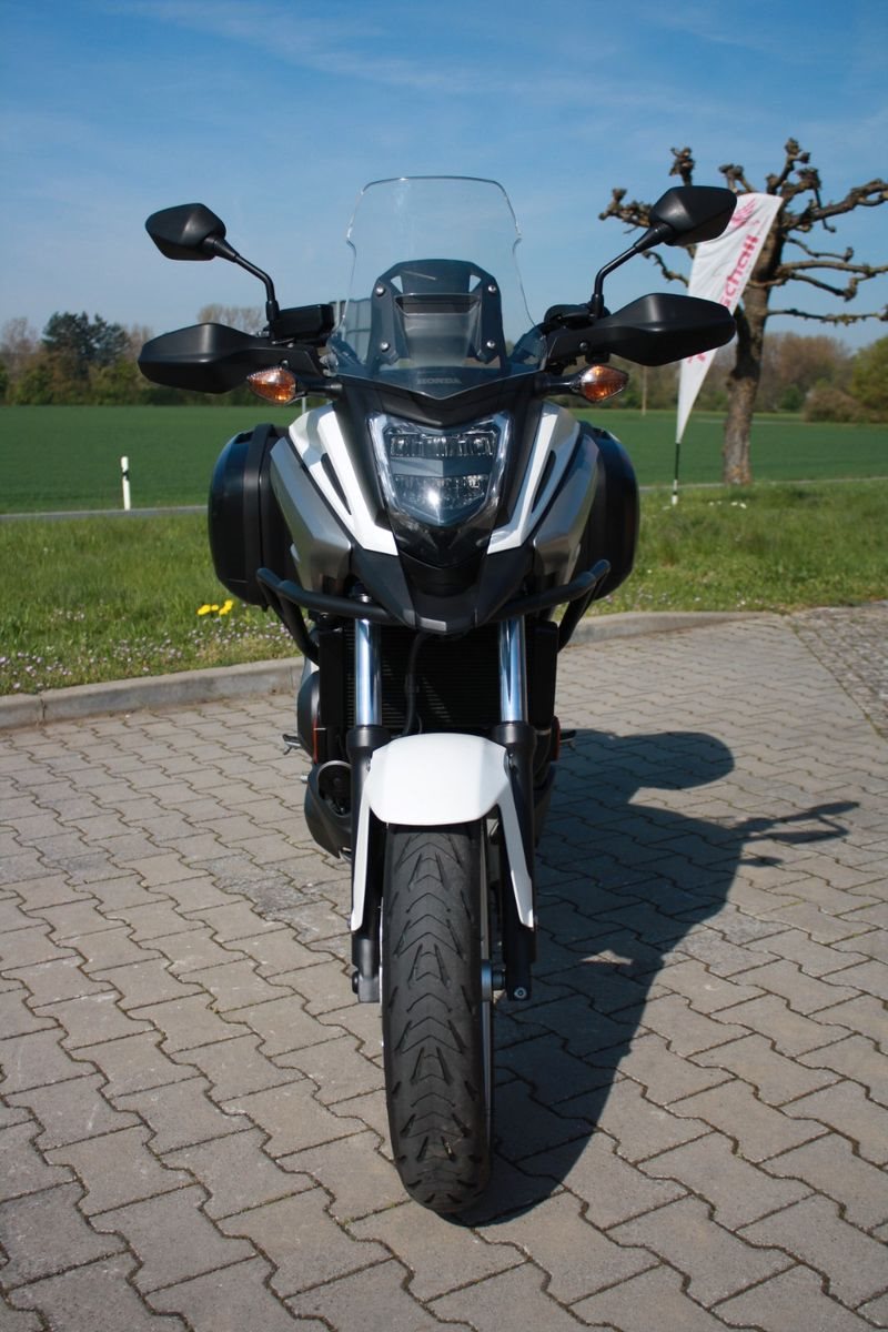 Ausgestattet ist die NC750X mit zwei abnehmbaren Seitenkoffern, einem Sturzbügel, Hauptständer sowie Handschutz bzw. Windabweisern an den Händen. Der Jahreskundendienst wurde frisch durchgeführt, alle Verschleißteile sind geprüft und in Ordnung.