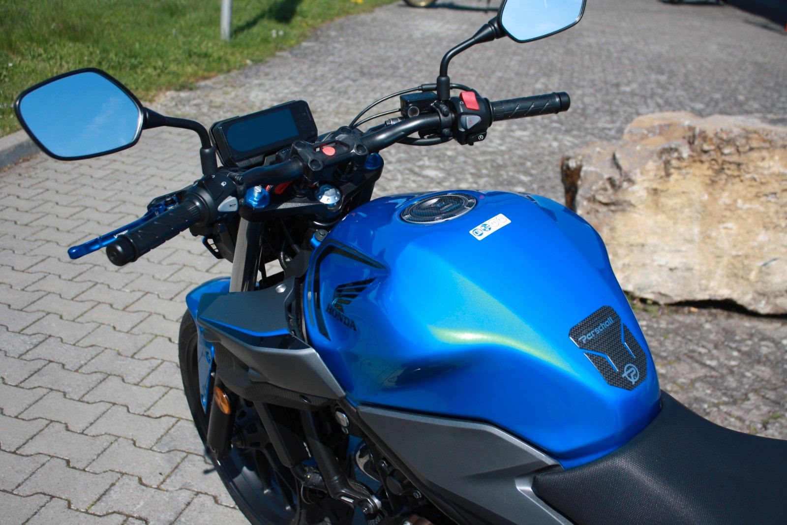 Ausgestattet ist die CB500 mit einstellbaren Brems- und Kupplungshebeln. Die Jahresinspektion wurde frisch durchgeführt, und alle Verschleißteile befinden sich in gutem Zustand.