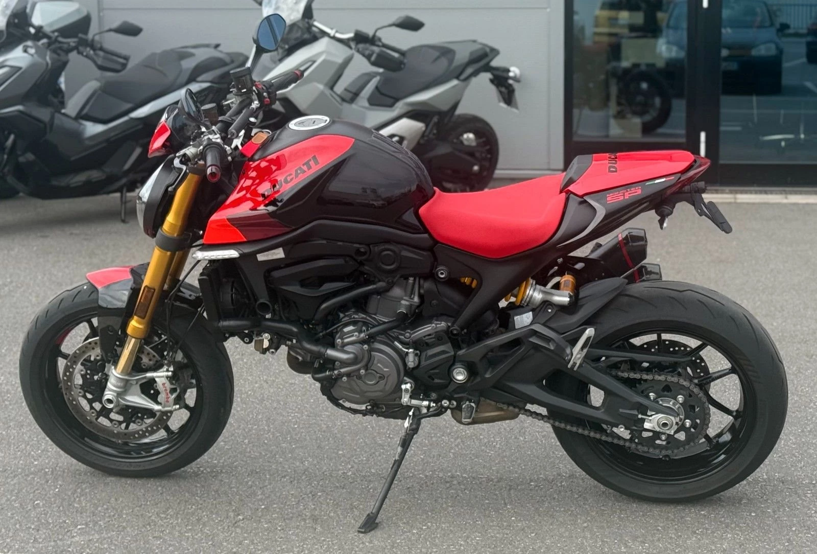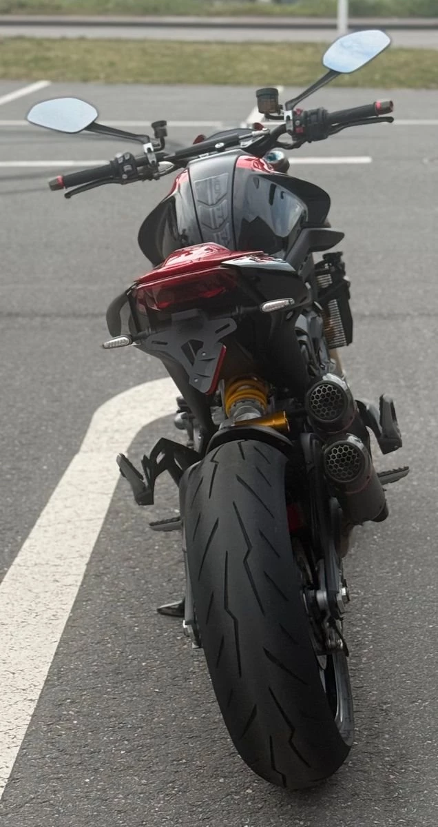 Termignoni Auspuff, kurzer Kennzeichenhalter, Tankpad, Soziusabdeckung, Öhlins Federbein und Gabel, Lenkungsdämpfer, CNC Lenkerendgewichte